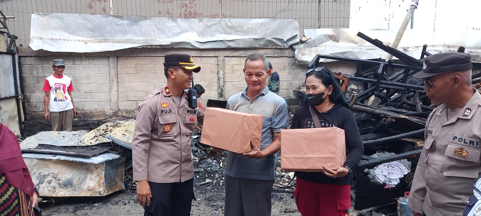 Kapolresta Banyumas Kombes Pol Dr. Ari Wibowo, S.I.K., M.H., melalui Kapolsek Purwokerto Selatan menyampaikan, Bansos berupa sembako diberikan kepada warga yang menjadi korban kebakaran, yaitu Sri Hastuti pemilik warung Warmindo Sodara dan juga Abu Supyan pemilik warung Lumpia Boom.