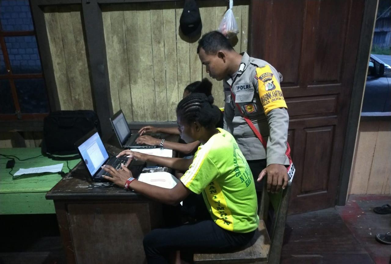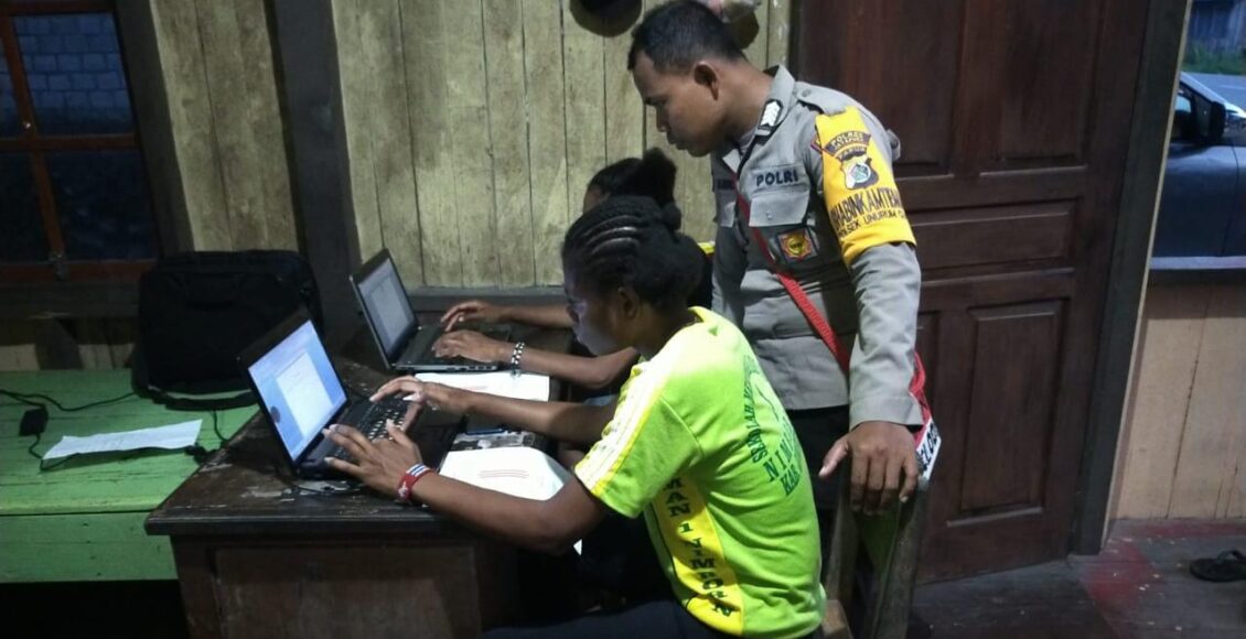 Unurum Guay ,ikagawanews.id – Bripka Mujiadi dan Bripka Syaiful H. Saimima, anggota Polsek Unurum Guay yang dengan tulus mengajarkan cara mengoperasikan komputer program Microsoft Word kepada para remaja asli Papua bertempat di Pos Polisi Nimbontong, Kampung Beneik, Distrik Unurum Guay, Kabupaten Jayapura, rabu (23/11) sore.