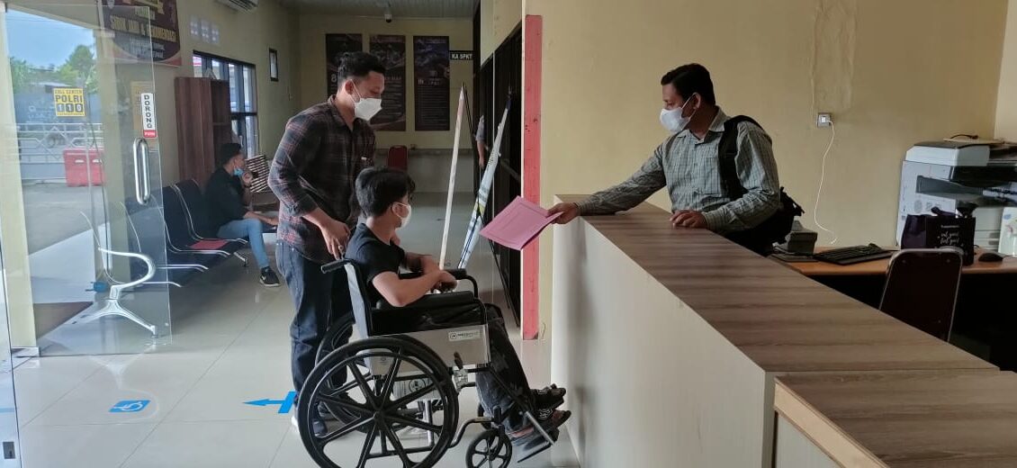 LHOKSEUMAWE,ikagawanews.id – Ada yang berbeda di ruang pelayanan SKCK Polres Lhokseumawe Jika biasanya petugas memberi pelayanan dengan duduk di balik meja kini seorang petugas turun langsung menggendong seorang pemuda dan memberikan kursi roda kepada pemohon disabelitas yang ingin membuat SKCK.