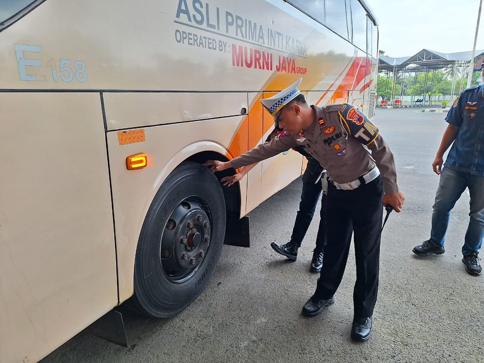 Menjelang Mudik Lebaran, Satlantas Polres Kebumen Gelar Ramp Check Kendaraan Bus yang Masuk ke Terminal