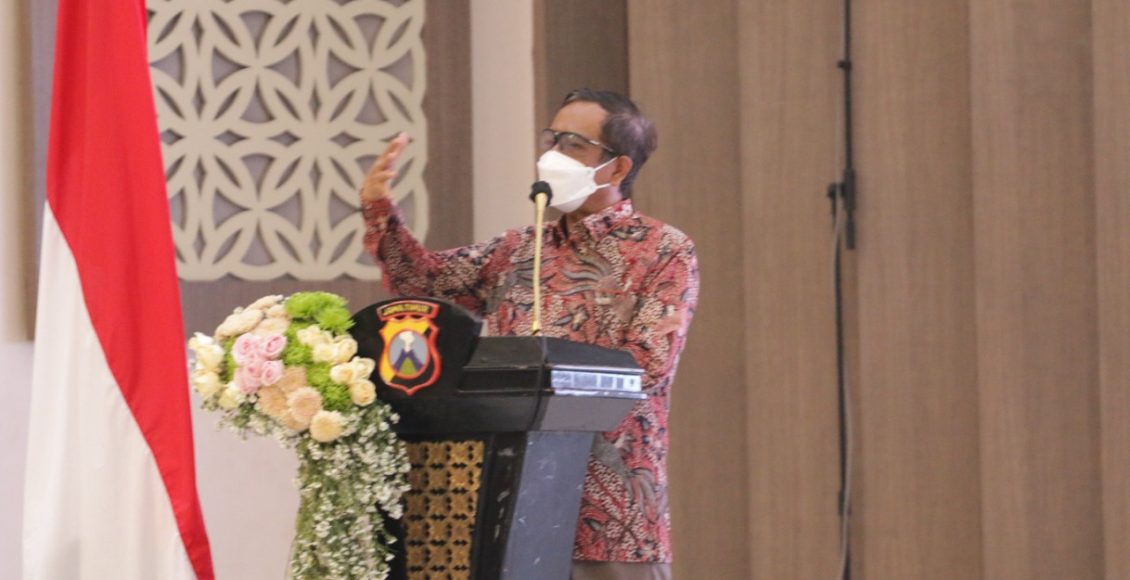 Dalam sambutannya, Menkopolhukam Prof. Dr. Mohammad Mahfud MD, menyebutkan, bahwa saat ini masyarakat menjalani normal baru serta peradaban baru untuk ke depan. Seperti jika bertemu dengan orang, saat ini tidak boleh berpelukan maupun berjabat tangan.