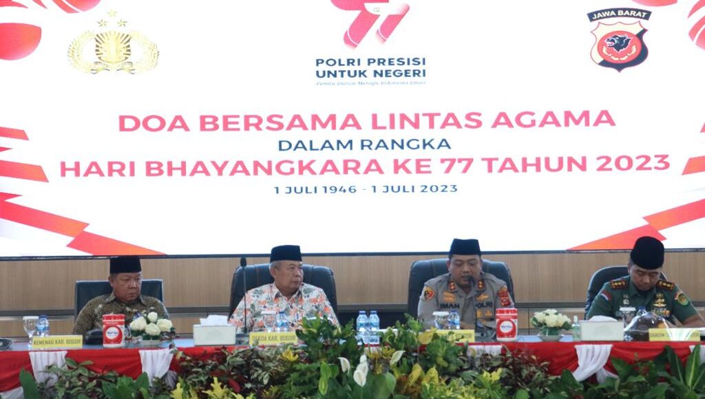 BOGOR,ikagawanews.id – Dalam rangka menyambut hari Bhayangkara ke 77, Polres Bogor menggelar do’a lintas agama di gedung aula Sanika satyawada Polres Bogor. Pada Kamis 15 Juni 2023.