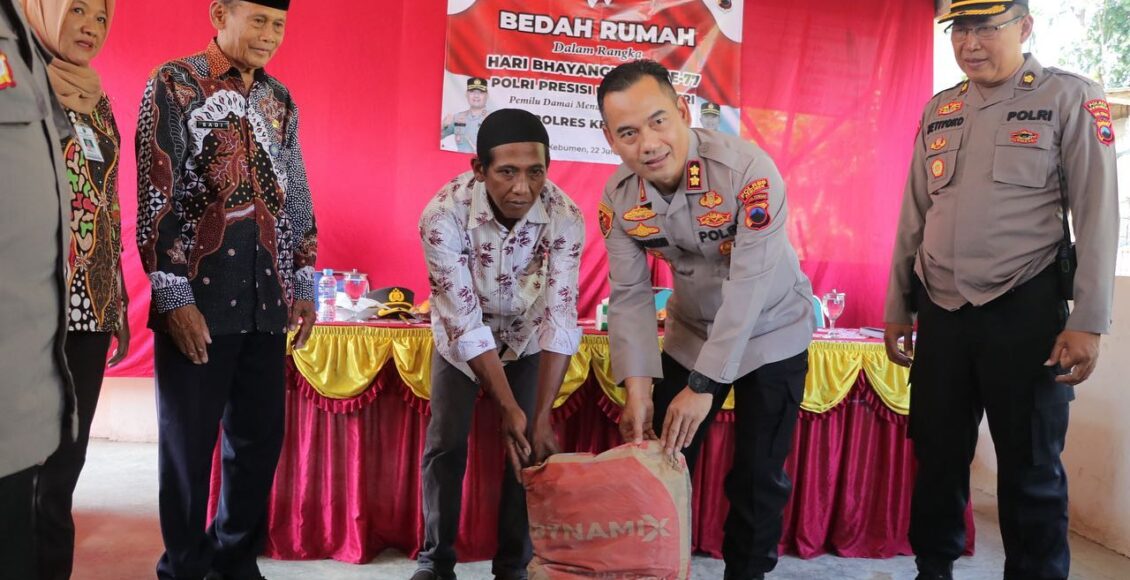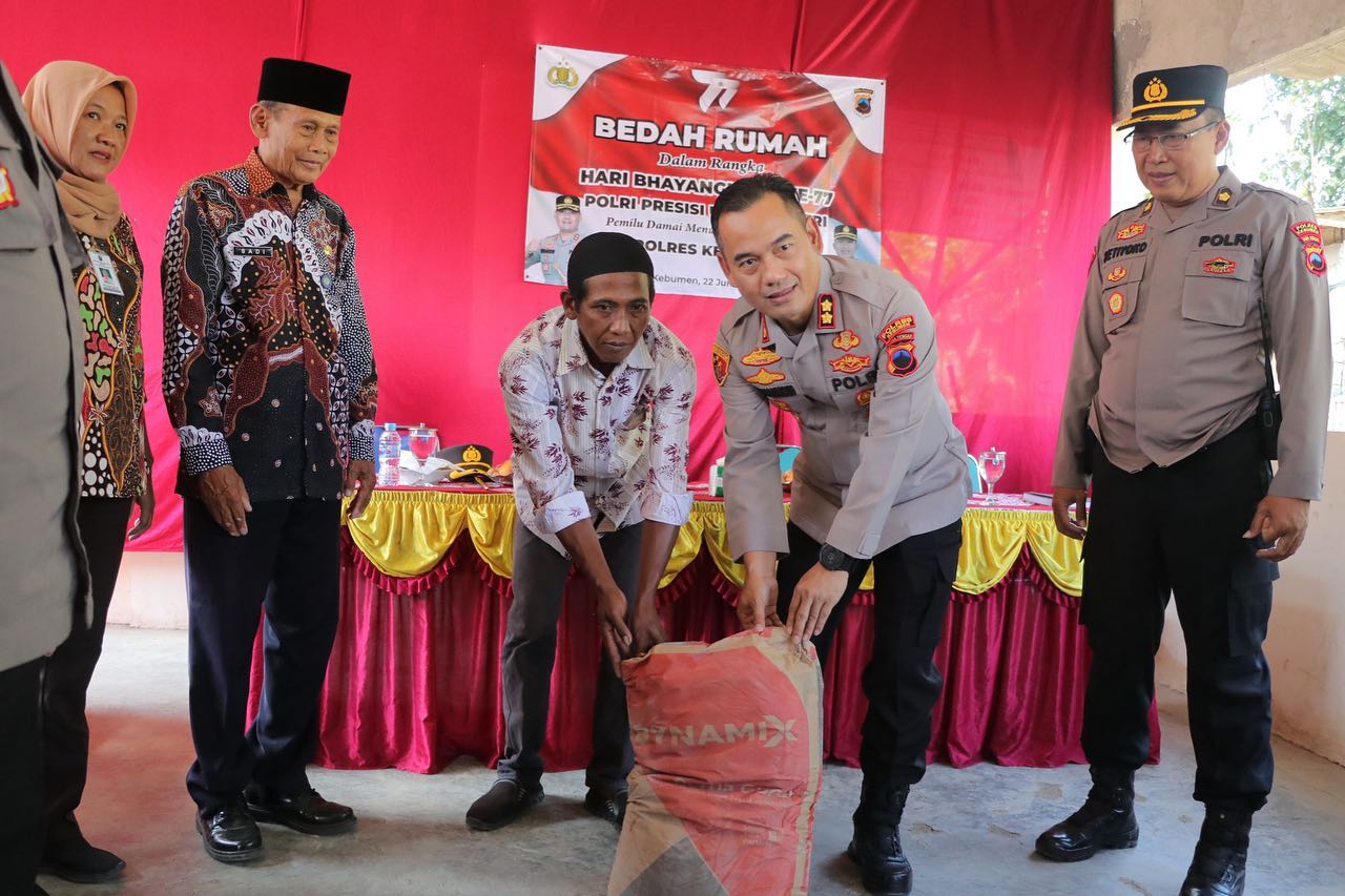 Pada kesempatan itu, Polres Kebumen memberikan bantuan berupa semen, keramik, daun pintu, hingga toren air sebagai saran bedah rumah.