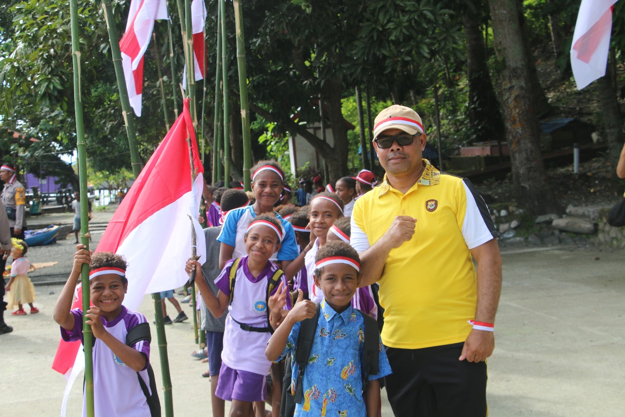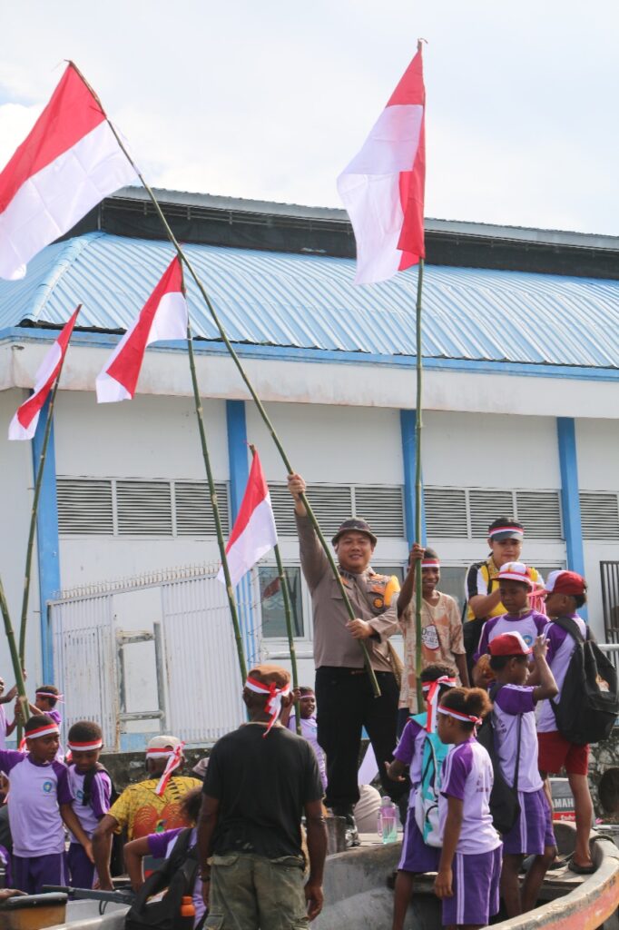 Kegiatan ini dipimpin langsung oleh Ondoafi Asei Besar, **Bapak Marthen Ohee**, tokoh adat yang disegani di wilayah Sentani, serta mendapat dukungan penuh dari Polsek Sentani Timur yang dipimpin **Kapolsek IPTU Susana Tecuari**. Dengan menaiki perahu tradisional, rombongan menyusuri Danau Sentani—seolah menggambarkan perjalanan panjang bangsa Indonesia menuju kemerdekaan yang hakiki.