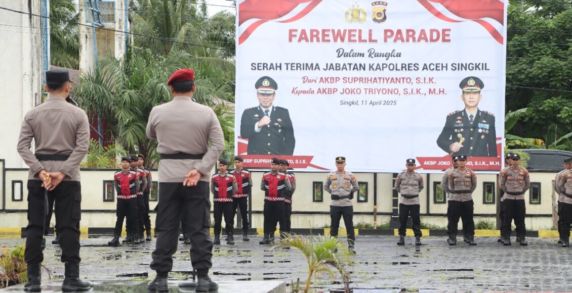 Singkil,ikagawanews.id – Polres Aceh Singkil menggelar acara Pisah Sambut Kapolres dari Pejabat lama AKBP Suprihatiyanto, S.I.K. digantikan oleh Pejabat baru yakni AKBP Joko Triyono, S.I.K., M.H., yang berlangsung di Mapolres Aceh Singkil. Jumat, 11 April 2025.
