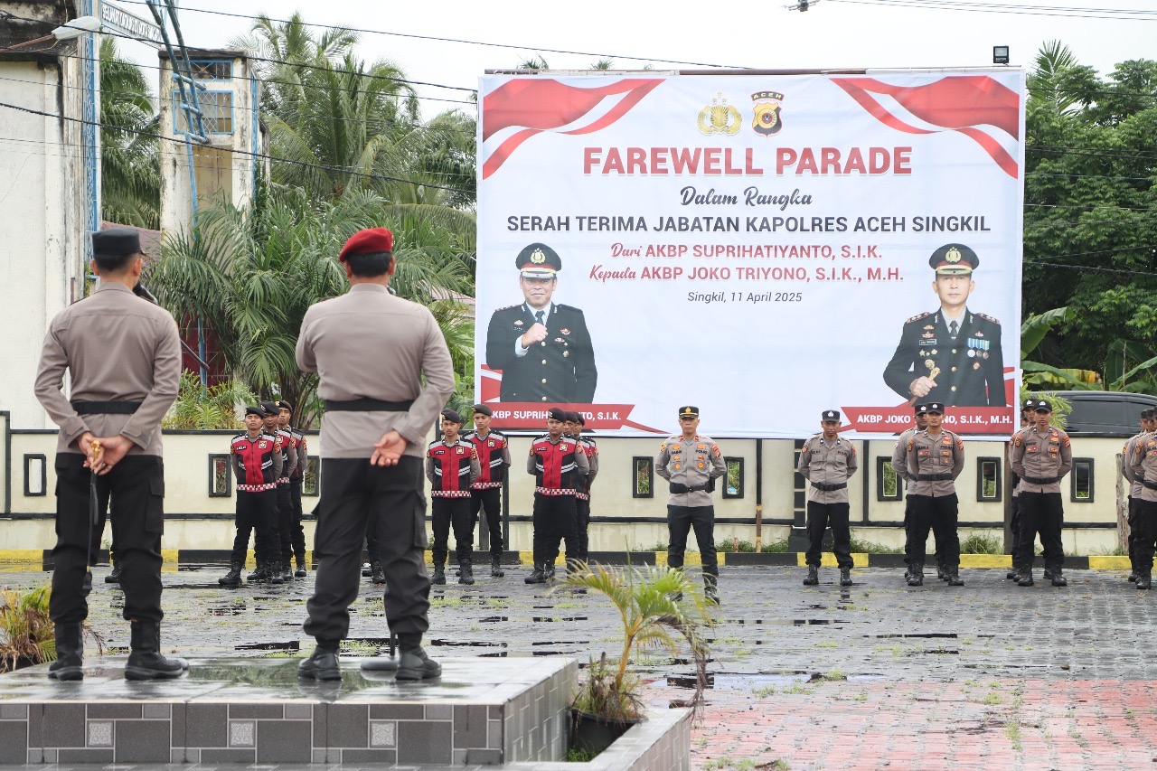 Meskipun Diguyur Hujan, Polres Aceh Singkil Gelar Pisah Sambut Kapolres Aceh Singkil Dengan Khidmat