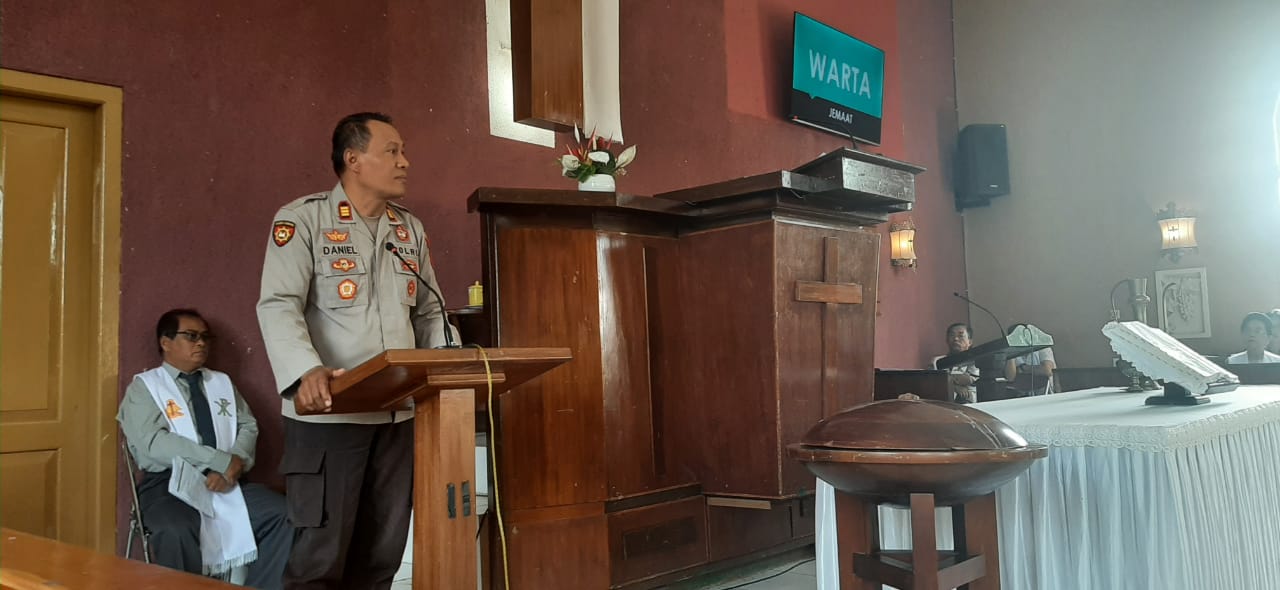 Menurut Kasat Binmas bahwa usai melaksanakan ibadah, selanjutnya mengajak para jemaat untuk mengunggkap keluh kesahnya sembari memberikan himbauan Kamtibmas kepada para jemaat