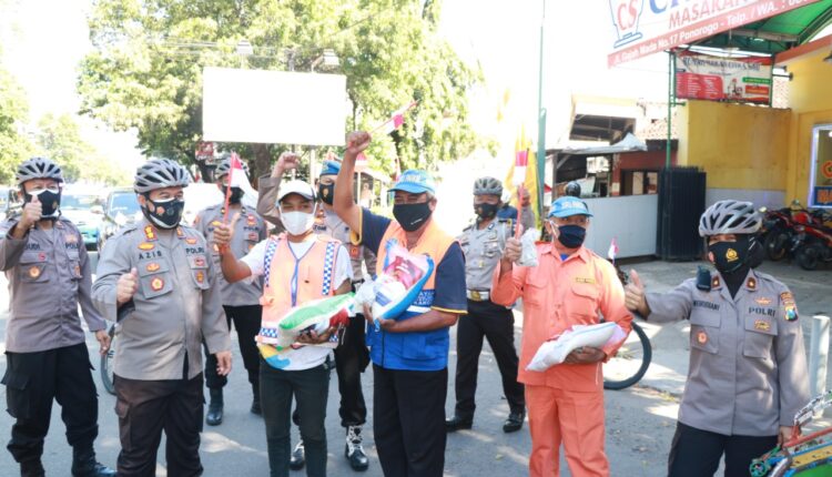 Momen Sambut HUT RI Ke 76,Kapolres Ponorogo Gowes Patroli Simpatik Sambil Bagi Bansos Dan Masker