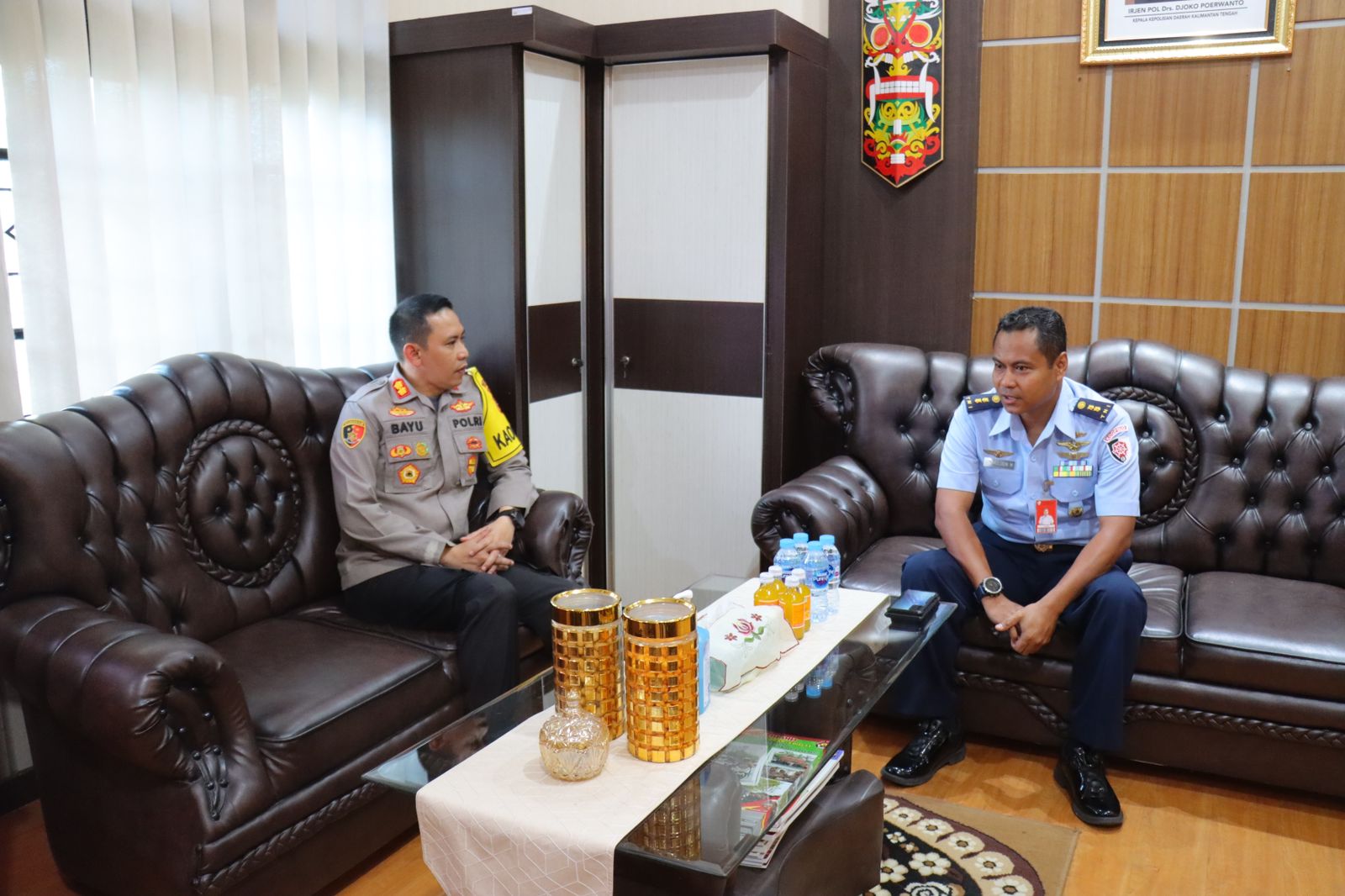 KOTAWARINGIN BARAT,ikagawanews.id – Kapolres Kotawaringin Barat AKBP Bayu Wicaksono,SH.,SIK.,M.Si menerima silaturahmi Letkol Pnb Ahmad Mulyono lulusan AAU tahun 2002 saat ini berdinas di Koopsud 1 dan sedang melaksanakan dinas di Lanud Iskandar,Jumat 15 Desember 2023 pukul 13.30 Wib di Polres Kotawaringin Barat.