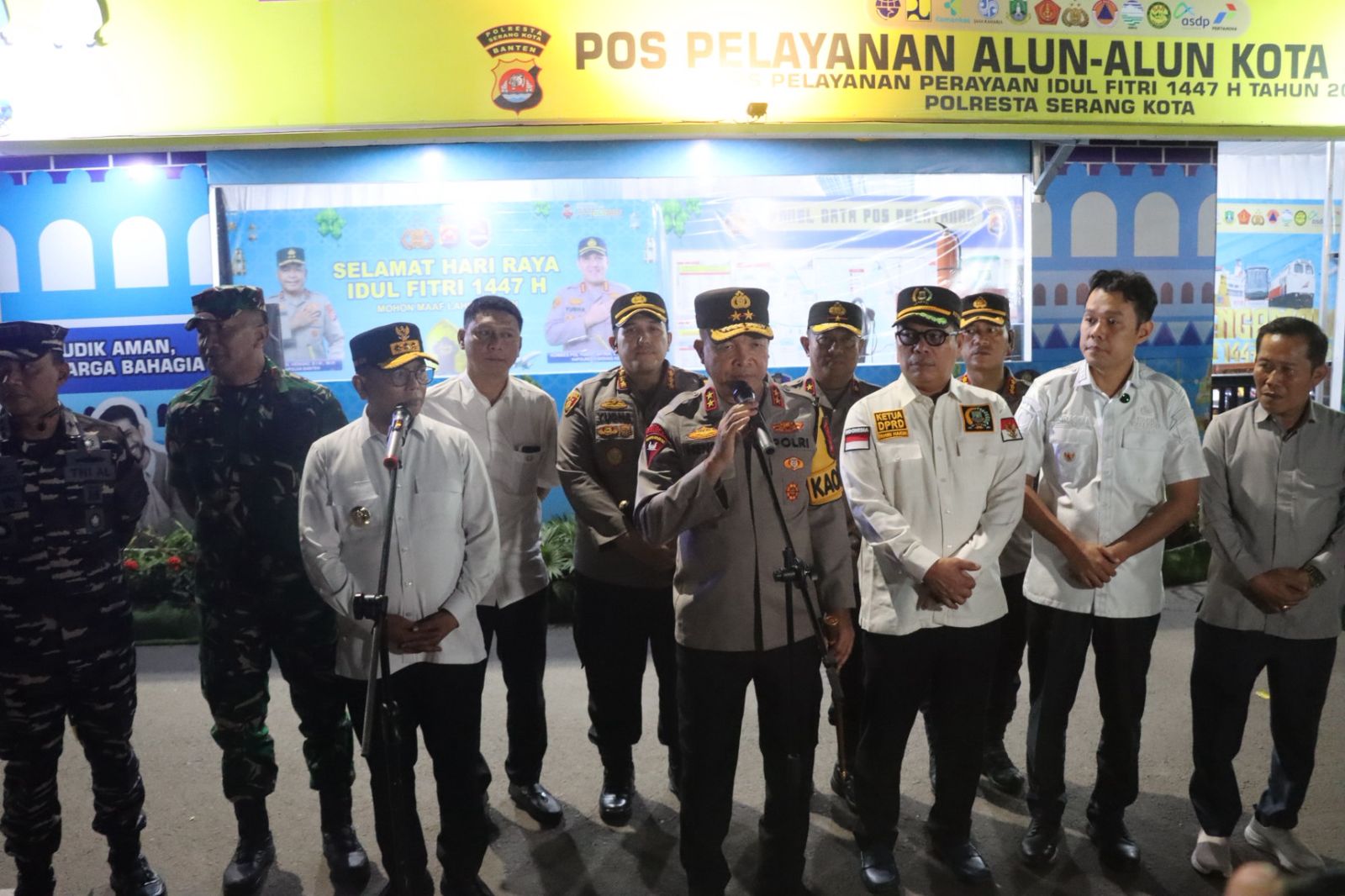Dalam kesempatannya, Kapolda Banten Irjen Pol Hengki menyampaikan bahwa Forkopimda Provinsi Banten baru saja mengikuti kegiatan Zoom yang dihadiri oleh Kapolri dan Panglima TNI. “Malam ini baru saja kita mengikuti kegiatan Zoom yang dihadiri Bapak Kapolri dan Panglima TNI dari Sumatera Utara. Selain itu, Polda Banten dengan stakeholder lainnya bahu membahu sejak 12 Maret 2026 melaksanakan gelar pasukan Operasi Ketupat Maung 2026 guna pengamanan arus mudik Lebaran 1447 H,” ucapnya.