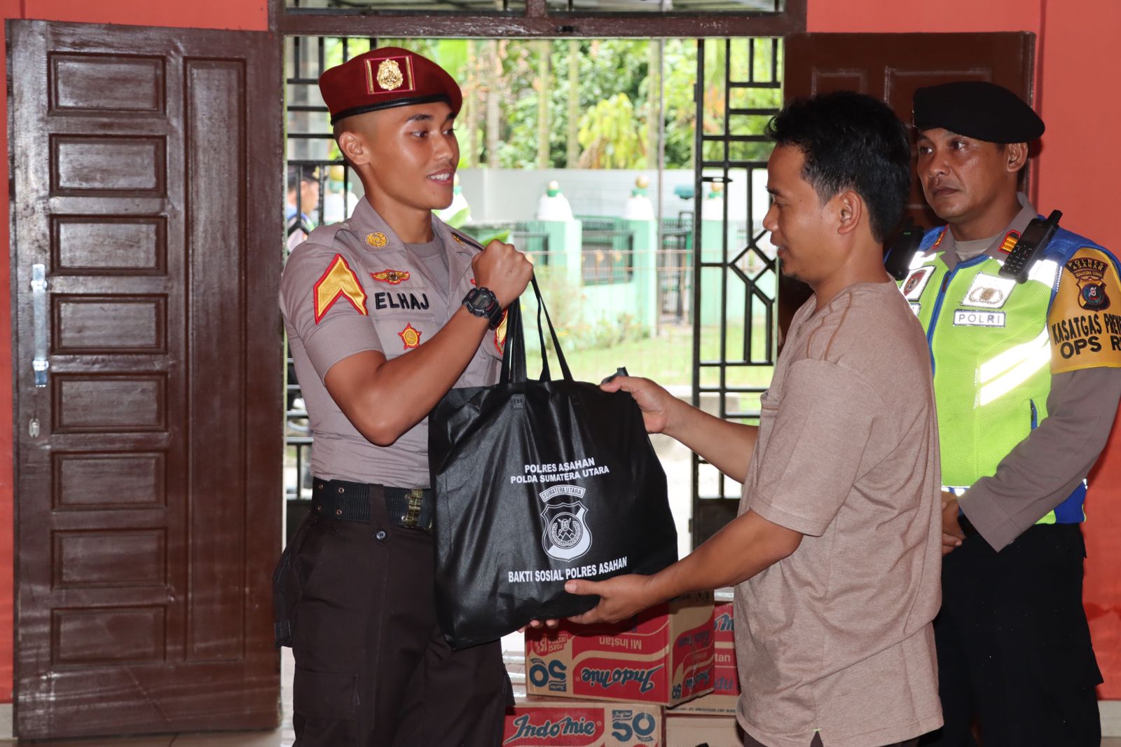 Dalam kegiatan tersebut Bhayangkara Taruna Muhammad Raditya Elhaj bersama Polres Asahan menyerahkan bantuan sejumlah sembako berupa Beras Indomie, Gula, Bubuk teh, Kopi dan Minyak makan.