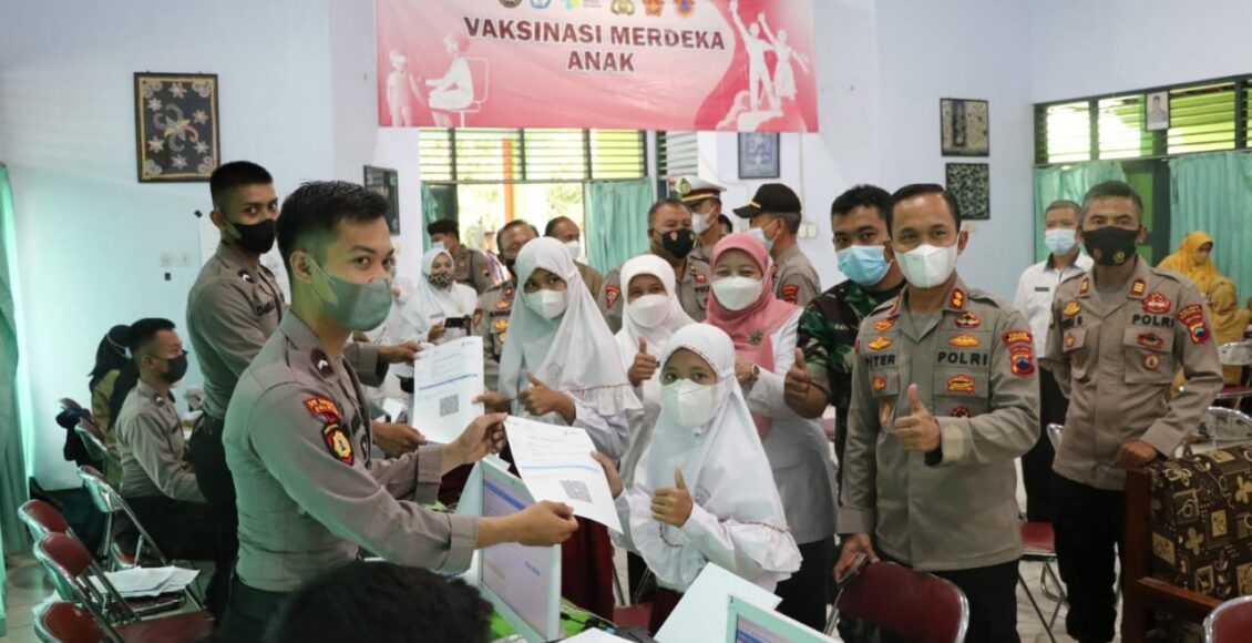 Vaksin untuk anak usia 6-11 tahun telah digelorakan Polres Kebumen sejak awal bulan Januari 2022.