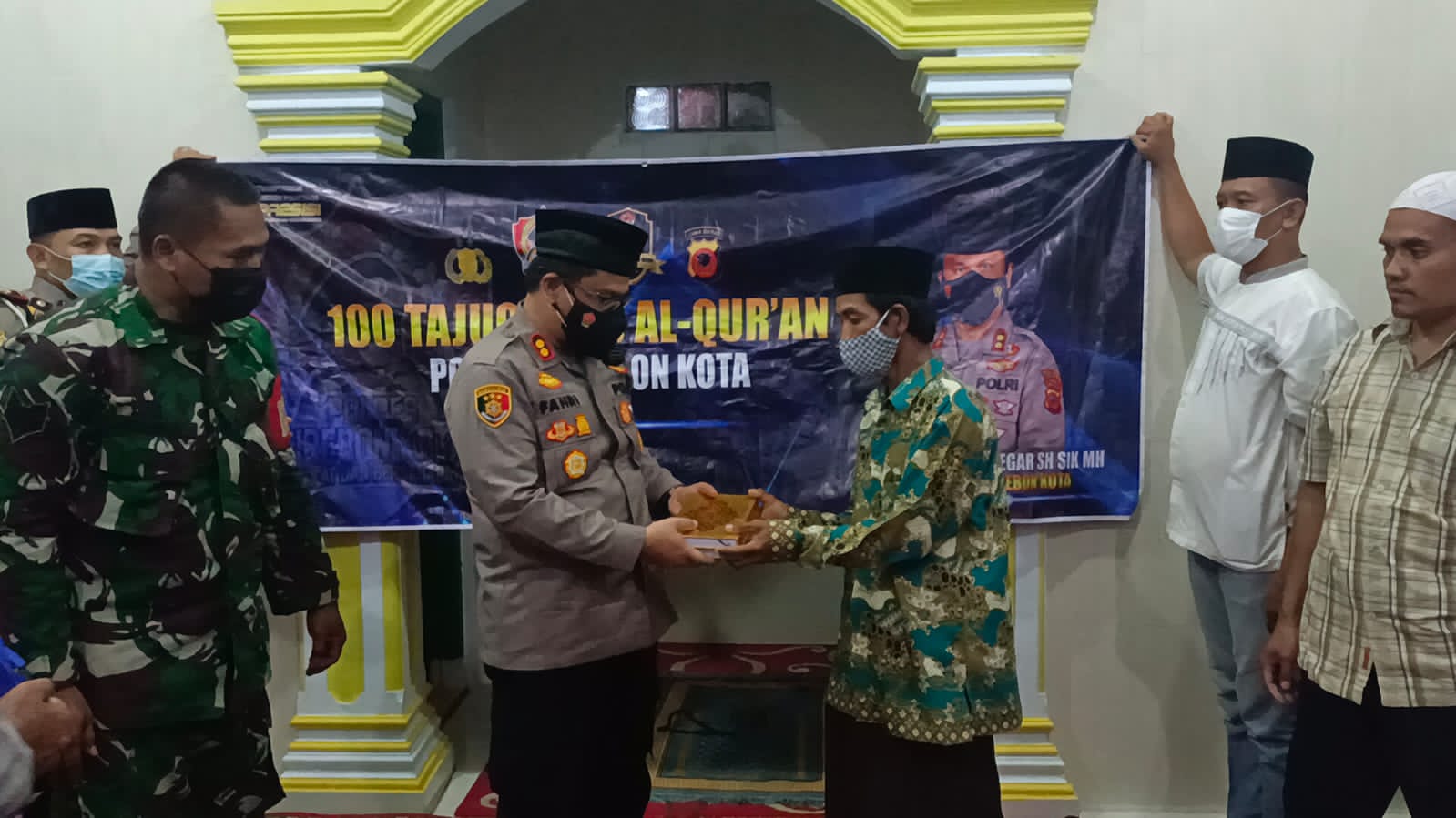 Untuk berbagi kasih dan mewujudkan polisi yang humanis menuju polisi yang presisi. Kapolres Cirebon Kota AKBP M. FAHRI SIREGAR, SH.S.IK.MH meluncurkan program 1000 Alquran 100 tajug dan hari ini dilaksanakan di Mushola / Tajug Al-Barokah Ds. Kertasura Kec. Kapetakan Kab. Cirebon. Jumat (24.09.21)