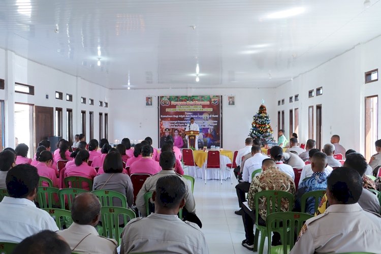 Perayaan Natal dengan mengusung tema “Kemuliaan Bagi Allah dan Damai Sejahtera Di Bumi” dan sub tema “Dengan Semangat Kerendahan Hati Menyambut Kelahiran Kristus Melalui Peran Polri Presisi, Berintegritas, Mengasihi, Dan Melayani Guna Mewujudkan Pemilu Damai Menuju Indonesia Maju.
