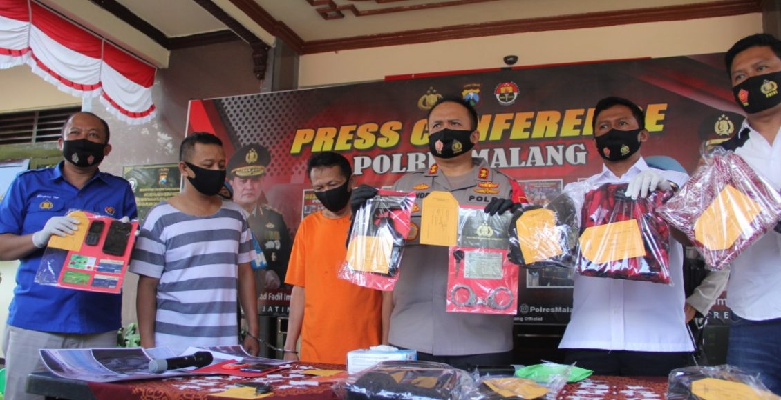Dalam Uraian Press Release, dua pelaku pemerasan yang mengaku sebagai anggota POLRI berinisial, M R, (38) warga Blitar, Kec. Kalipare Kab.Malang;