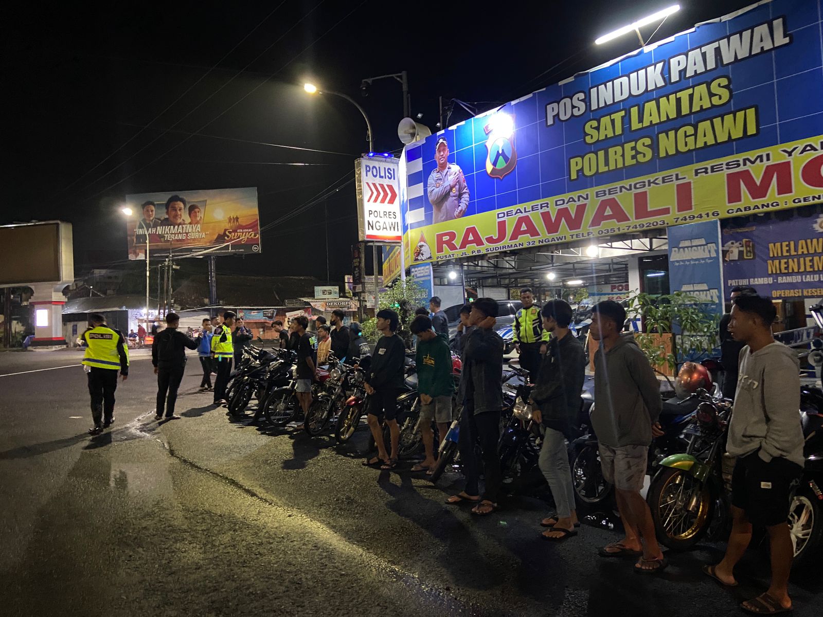 “Sesuai petunjuk Kapolres Ngawi AKBP Dwiasi Wiyatputera, kami laksanakan patroli dan mengamankan masyarakat yang disinyalir akan balap liar serta yang menggunakan knalpot tidak sesuai standar alias brong,” tutur Kasat Lantas