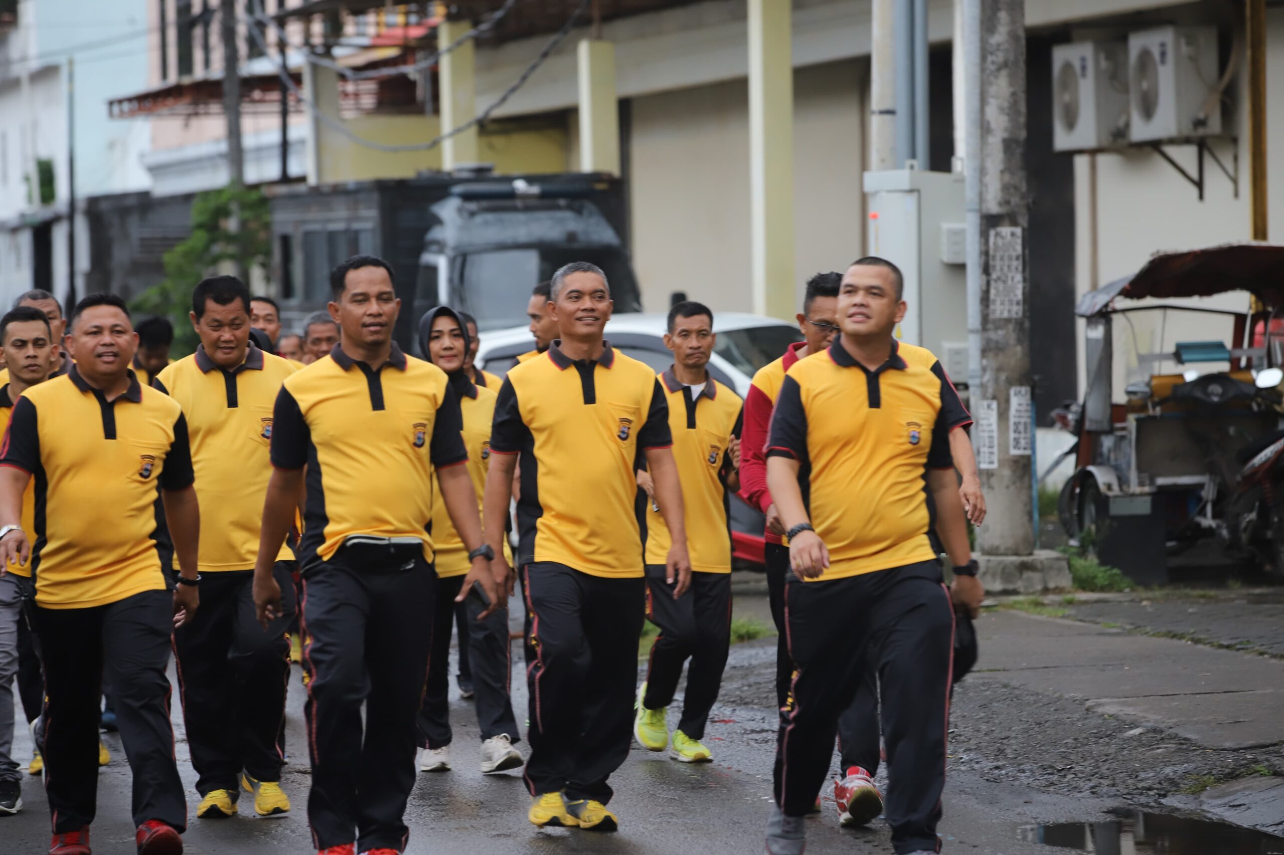 Kegiatan olahraga pagi dimulai dengan jalan santai keluar dari Kantor Polres Gowa. Suasana penuh keakraban dan semangat terlihat jelas ketika peserta melangkah bersama, saling berbagi cerita, dan menikmati suasana pagi yang segar.