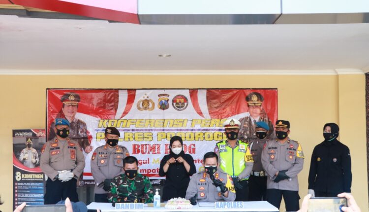 Kapolres Ponorogo AKBP Moch.Nur Azis,SH.,SIK.,MSi.,dalam jumpa pers,Selasa (3/8/2021) menjelaskan, Polres Ponorogo dan Polsek Jajaran telah melaksanakan kegiatan pencegahan dan antisipasi pelanggaran prokes covid 19 dan juga penanggulangan dampak sosial dan ekonomi melalui serangkaian giat operasi yustisi,balap liar,dan penyerahan bantuan sosial.