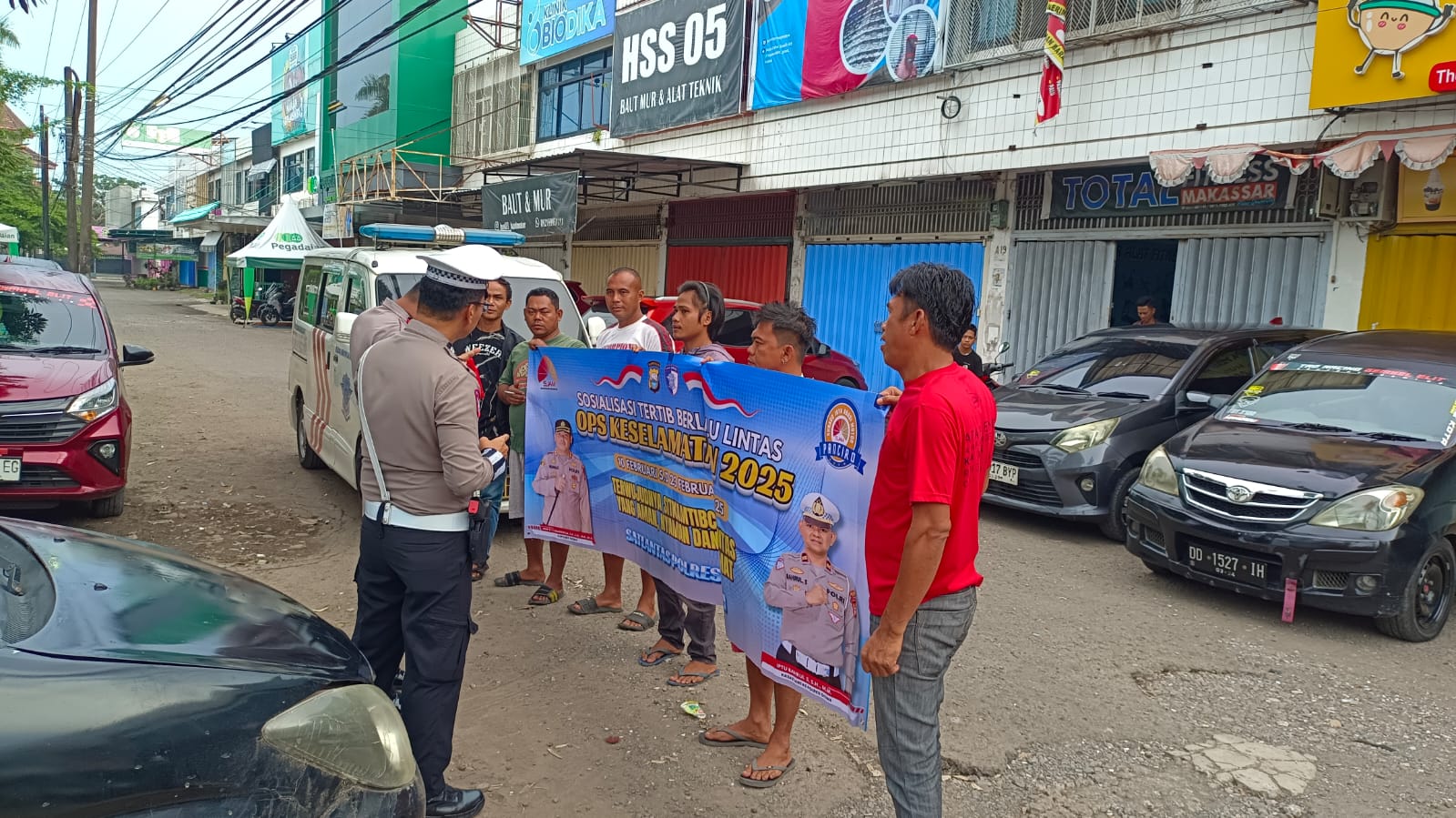 Kegiatan yeng dilaksanakan di jalan Poros Sultan Hasanuddin tepatnya di depan ruko graha satelit tersebut menyasar sopir angkutan umum gelap yang mangkal menunggu penumpang.