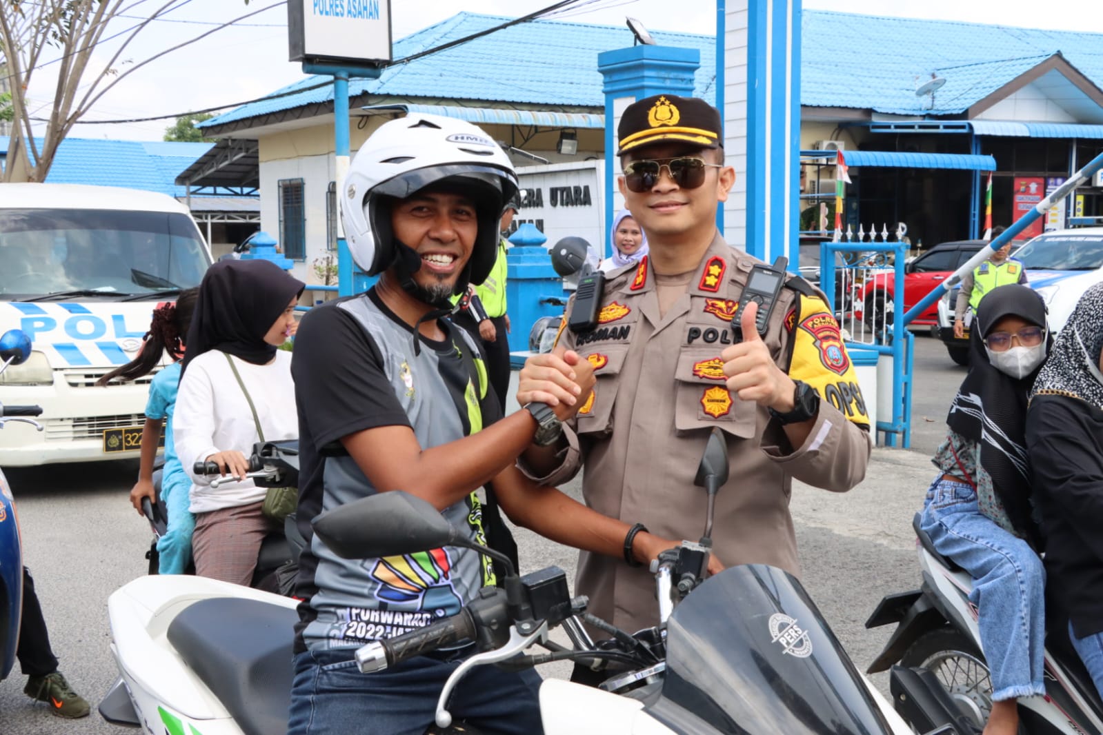 “Kita berikan kepada pengguna jalan yang tertib berlalu lintas sebagai bentuk motivasi dan penghargaan kepada masyarakat,” ujar Kapolres Asahan AKBP Roman.