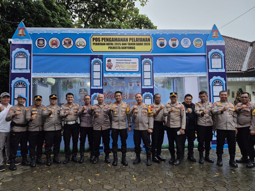 BANYUMAS,ikagawanews.id – Kapolresta Banyumas Kombes Pol Dr. Ari Wibowo, S.I.K., M.H., bersama Pejabat Utama (PJU) Polresta Banyumas melaksanakan pengecekan kesiapan Pos Pengamanan (Pospam) Operasi Lilin Candi 2025, Sabtu (20/12/2025) sore. Kegiatan ini dilakukan untuk memastikan pengamanan ibadah umat Kristiani berjalan aman dan kondusif.