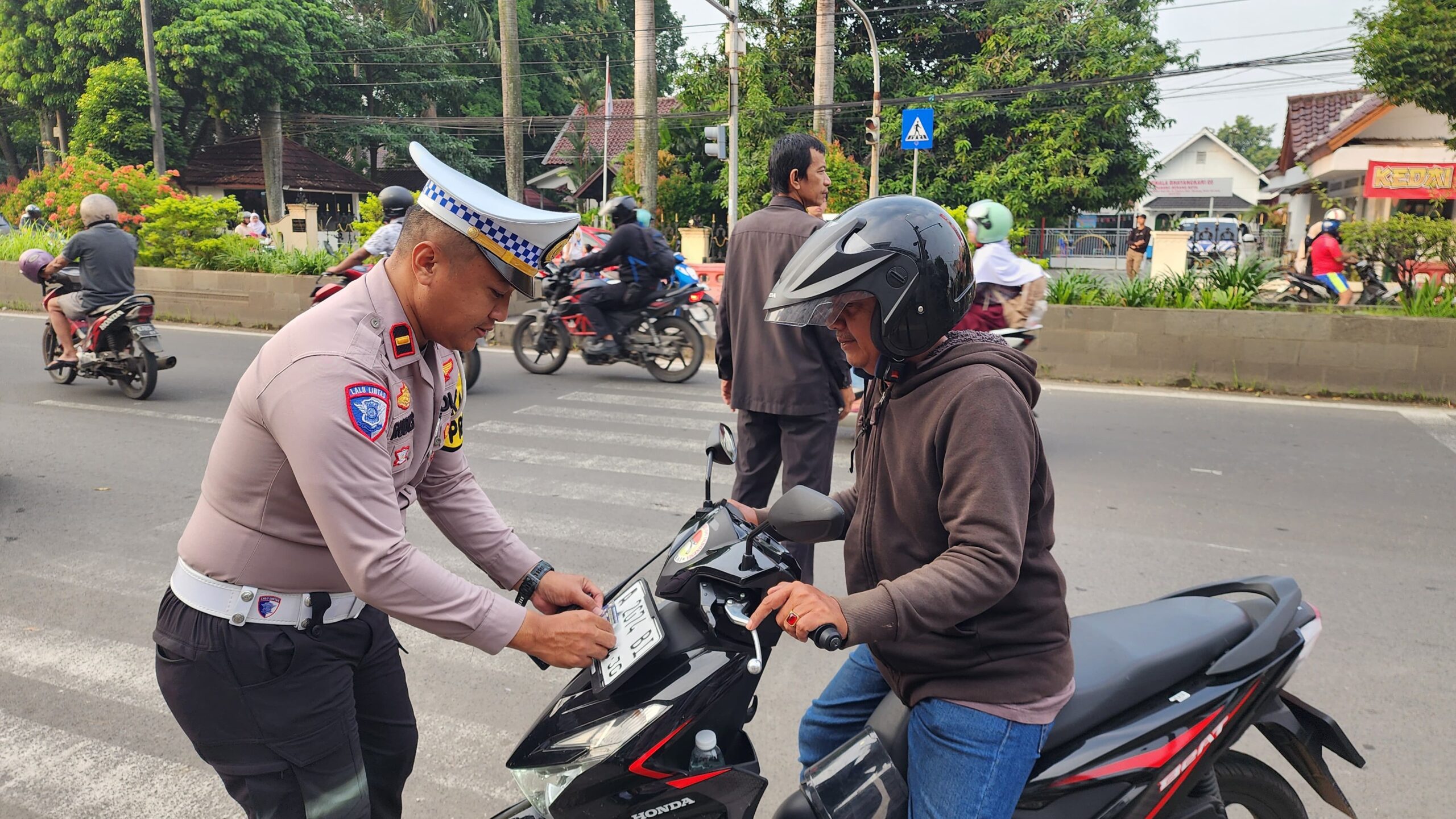 Kami menghimbau kepada Masyarakat untuk melengakapi surat kendaraan, STNK, SIM, dan patuhi rambu lalulintas. ujar Kompol Tiwi.(Humas/Red)