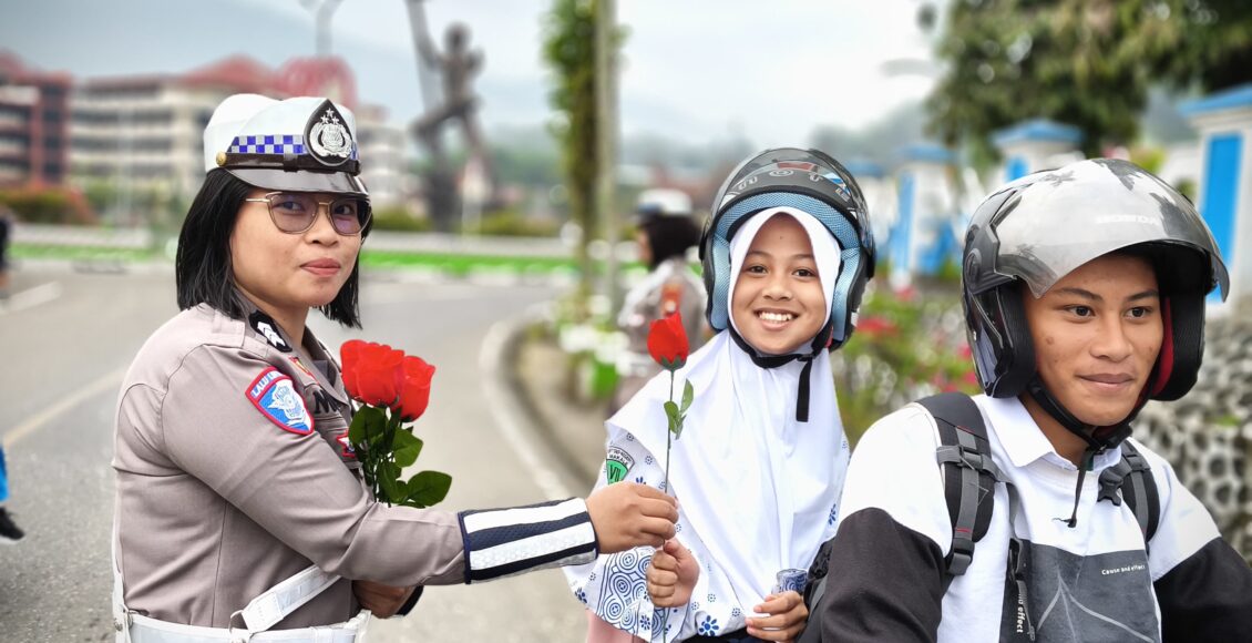 Ops Patuh 2025 di Tana Toraja: Pembagian Helm, Bunga, dan Cokelat untuk Keselamatan