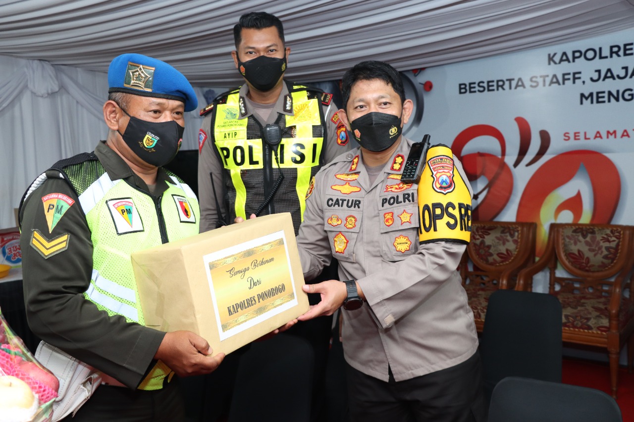“Malam hari ini kami melakukan patroli skala besar untuk memberikan suasana yang kondusif dan nyaman, ucap Kapolres Ponorogo,” AKBP Catur C Wibowo.