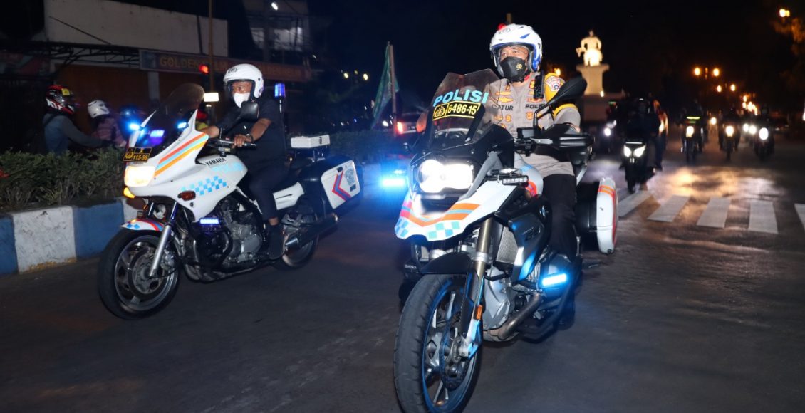 “Malam hari ini kami melakukan patroli skala besar untuk memberikan suasana yang kondusif dan nyaman, ucap Kapolres Ponorogo,” AKBP Catur C Wibowo.