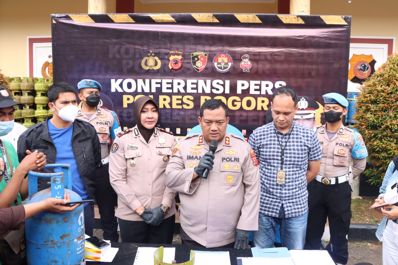 Kapolres Bogor AKBP Dr. Iman Imanuddin S.H., S.I.K., M.H dalam konferensi persnya pada Kamis ( 27/10). Mengatakan bahwa pengungkapan yang berhasil di lakukannya tersebut berawal dari informasi masyarakat yang diterima oleh pihak Polres Bogor, yang mana dari informasi tersebut kami langsung melakukan penyelidikan ke lokasi tempat kejadian penyuntikan pemindahan isi tabung gas berukuran 3 kilo ke tabung gas berukuran 12 kilo gram menggunakan selang. dalam melakukan aksinya pelaku ini juga menggunakan es batu untuk membedakan tekanan dalam tabung gas.