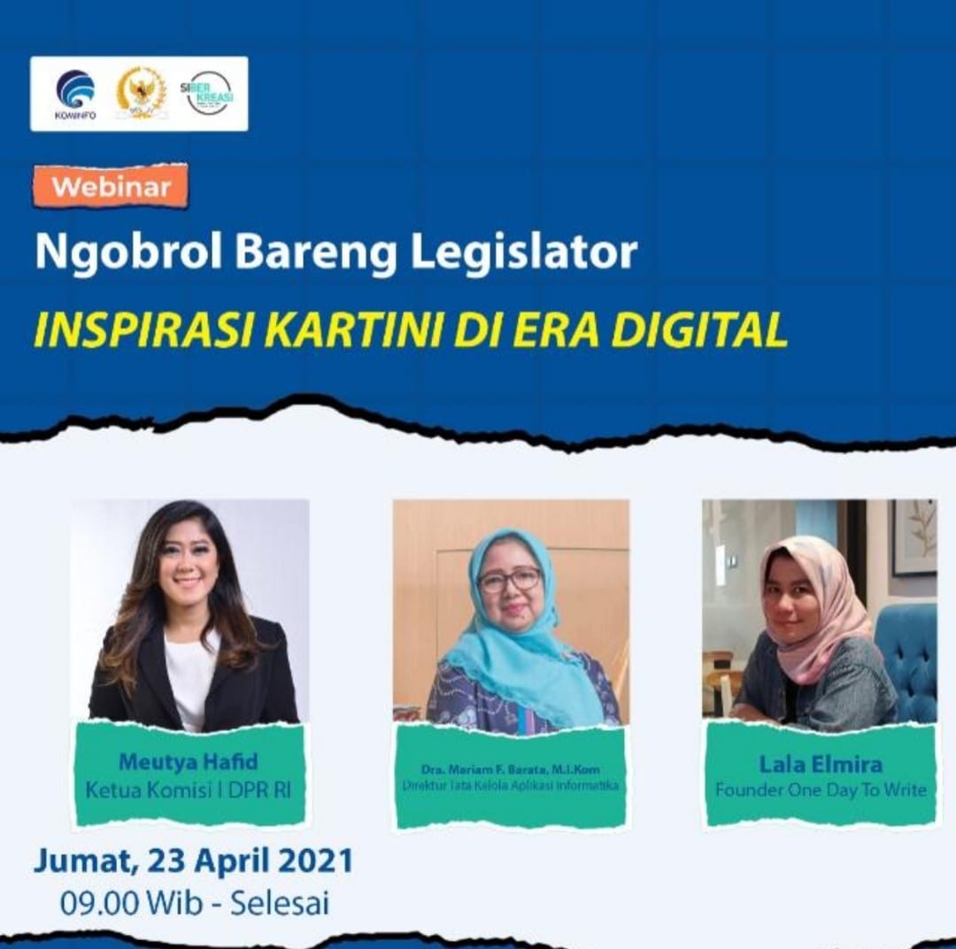 Hal itu disampaikan Meutya Hafid saat menjadi keynote speaker dalam acara webinar ngobrol bareng legislator bertajuk “Inspirasi Kartini di Era Digital” yang digelar secara virtual zoom di Jakarta, Jumat (23/4). Selain Meutya Hafid, para pembicara yang hadir dalam acara itu, Direktur Tata Kelola Aplikasi Informatika, Mariam F Barata dan Founder One Day To Write, Lala Elmira.