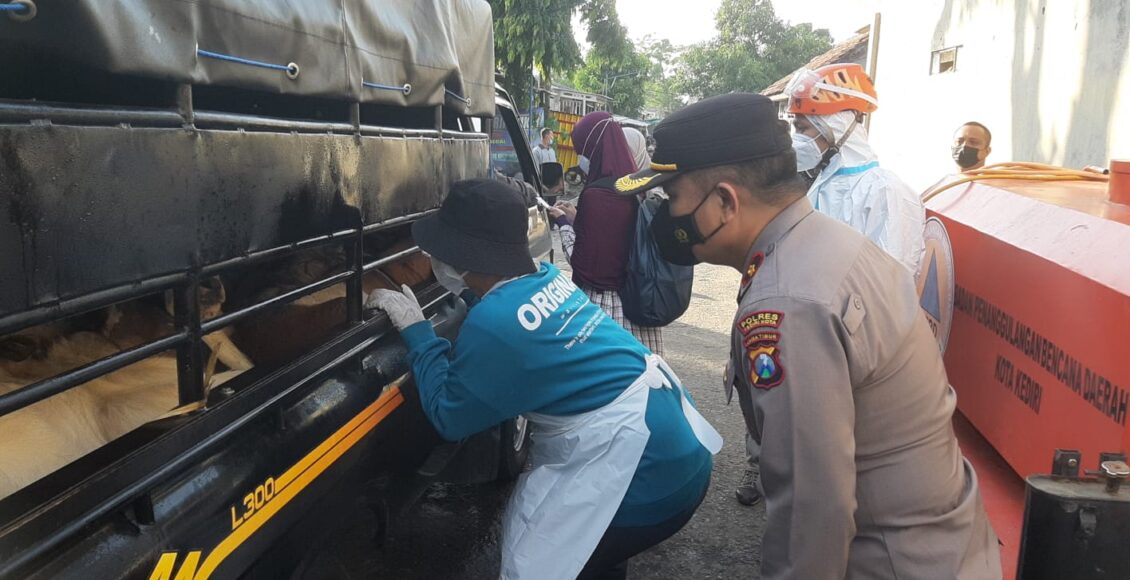 “Polres Kediri Kota menerjunkan personel Kepolisian untuk membantu petugas DKPP selama rangkaian proses pengecekan hewan ternak di pasar Hewan PD Joyoboyo Kota Kediri,” kata Kompol Abraham Sissik.