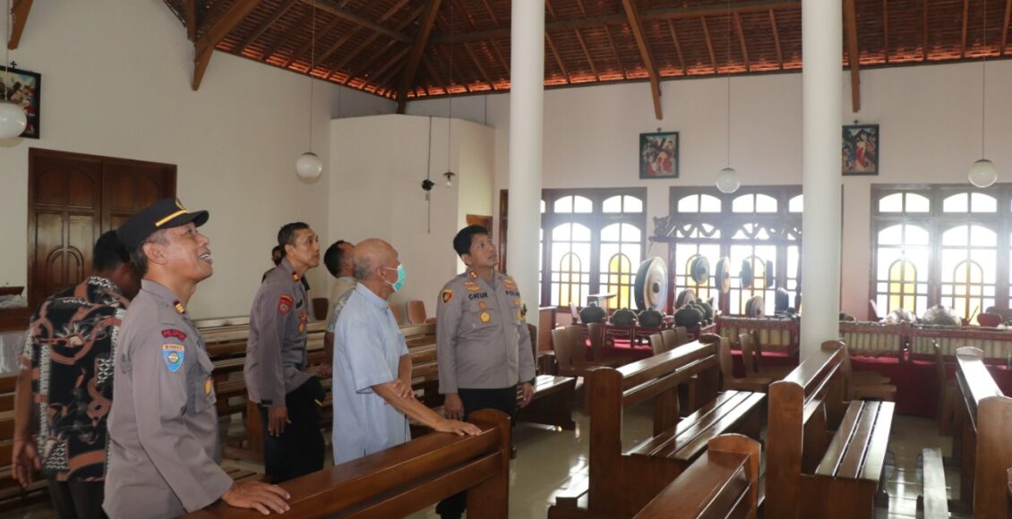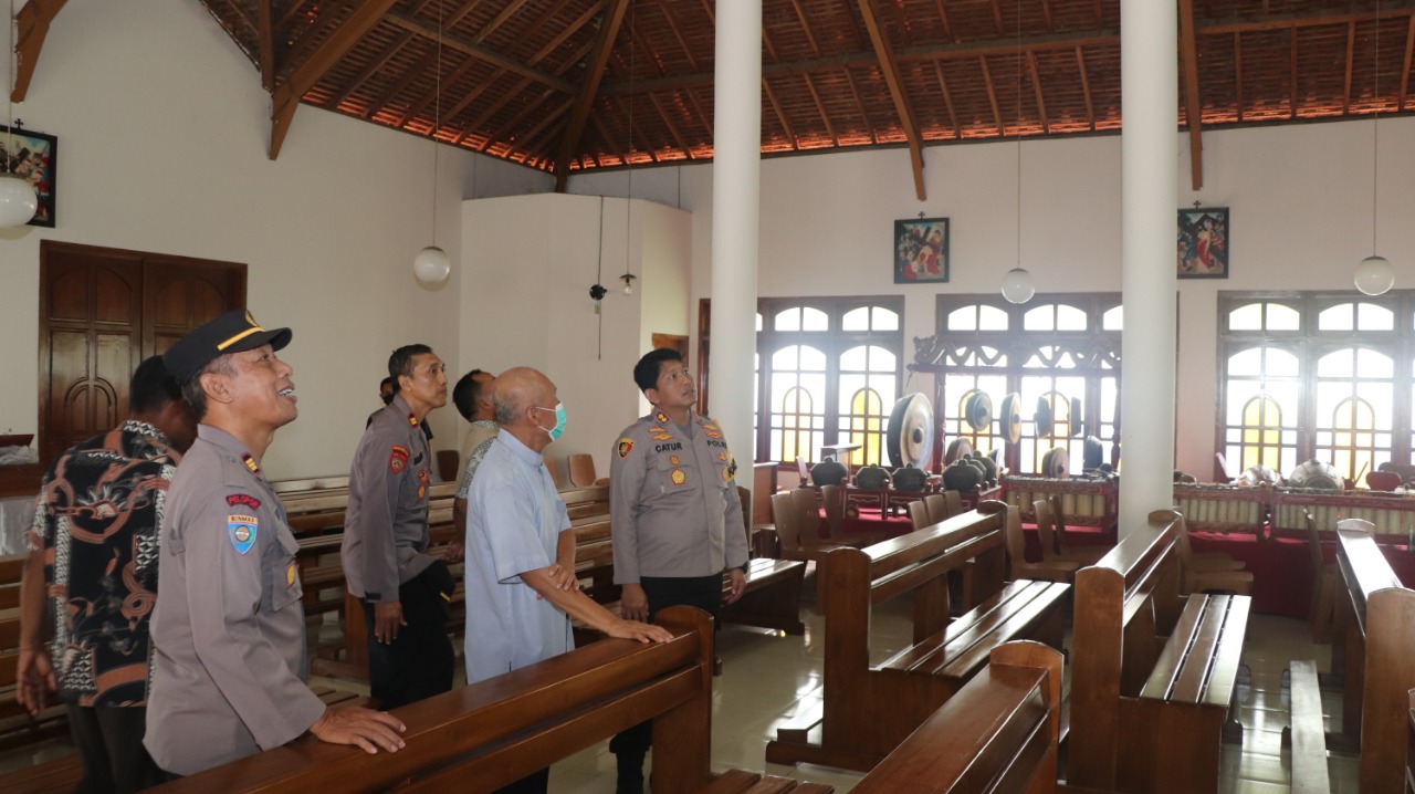 AKBP Catur menjelaskan kunjungan di Gereja ST. Hilarius untuk memantau perkembangan situasi serta silaturahmi dengan pengurus gereja.