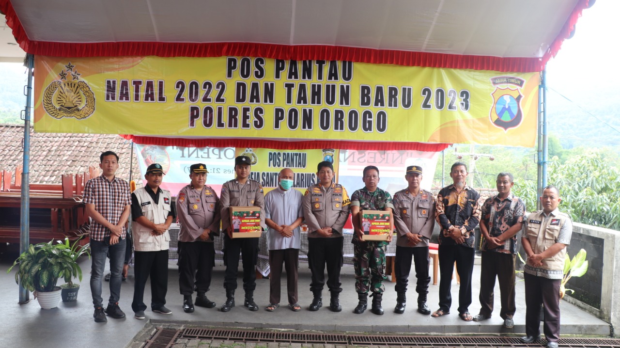 Kemudian penyerahan bingkisan secara simbolis oleh Kapolres Ponorogo kepada Pastor Gereja dan petugas jaga Pospam Nataru.