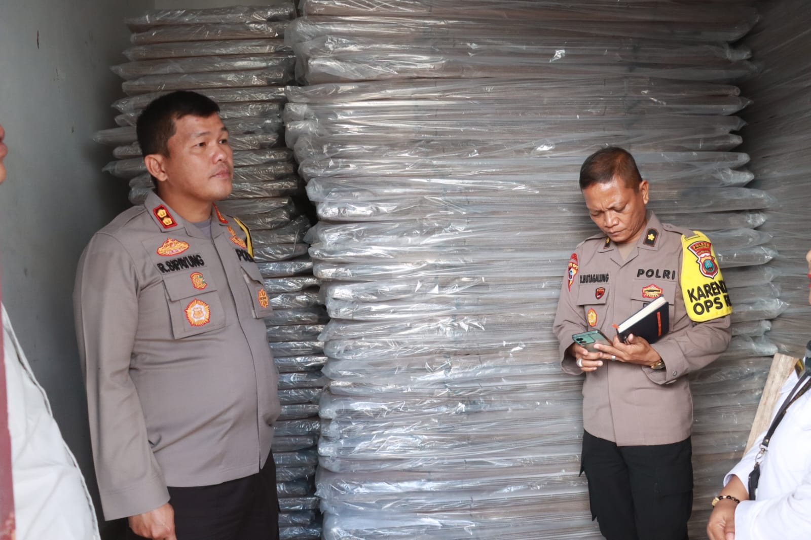 Kapolres Simalungun AKBP Ronald F.C Sipayung, S.H., S.I.K., M.H., menyampaikan apresiasi atas kondisi gudang logistik pemilu yang terjaga dengan baik. Ia berharap, pelaksanaan pemilu di Kabupaten Simalungun dapat berjalan dengan lancar dan aman, dengan dukungan logistik pemilu yang memadai.(joe)
