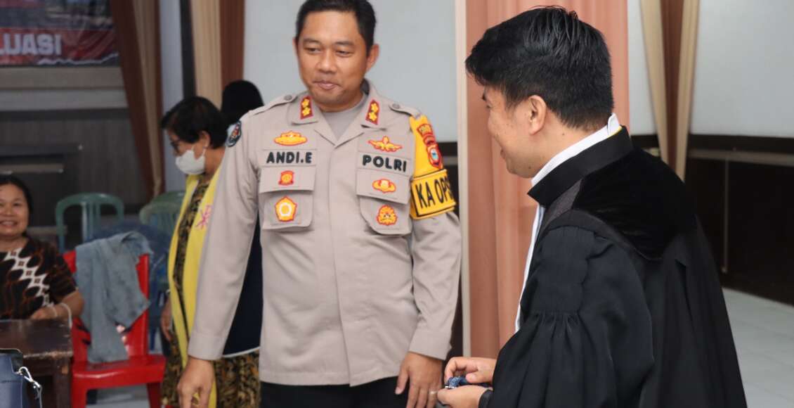 Pada kesempatan itu Kapolres memberikan selamat secara langsung kepada umat kristiani yang sementara melaksanakan perayaan Natal yang dipimpin Pdt. Petrus Palanda, M.Th. “Selamat Natal bagi yang merayakannya, harapan kami, tidak ada gangguan kamtibmas sedikit pun sehingga perayaan Natal bisa dilaksanakan dengan khidmat,”.