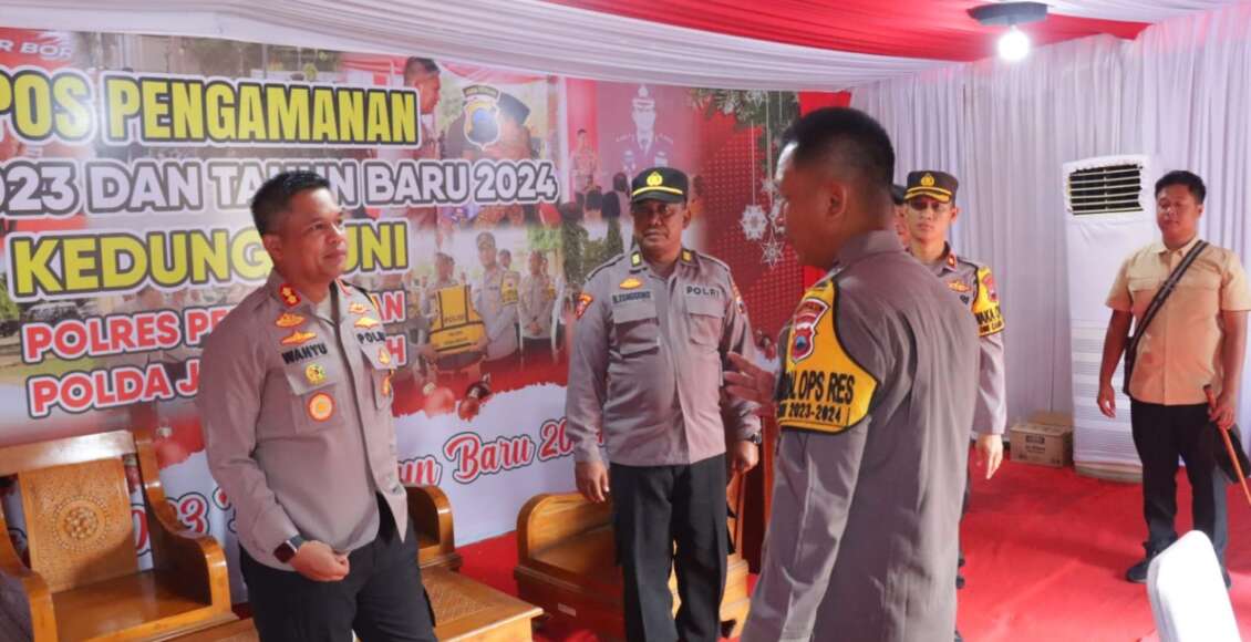 Pastikan Peringatan Natal Berlangsung Aman, Kapolres Pekalongan Cek Kesiapan Pos Pengamanan Operasi Lilin Candi 2023
