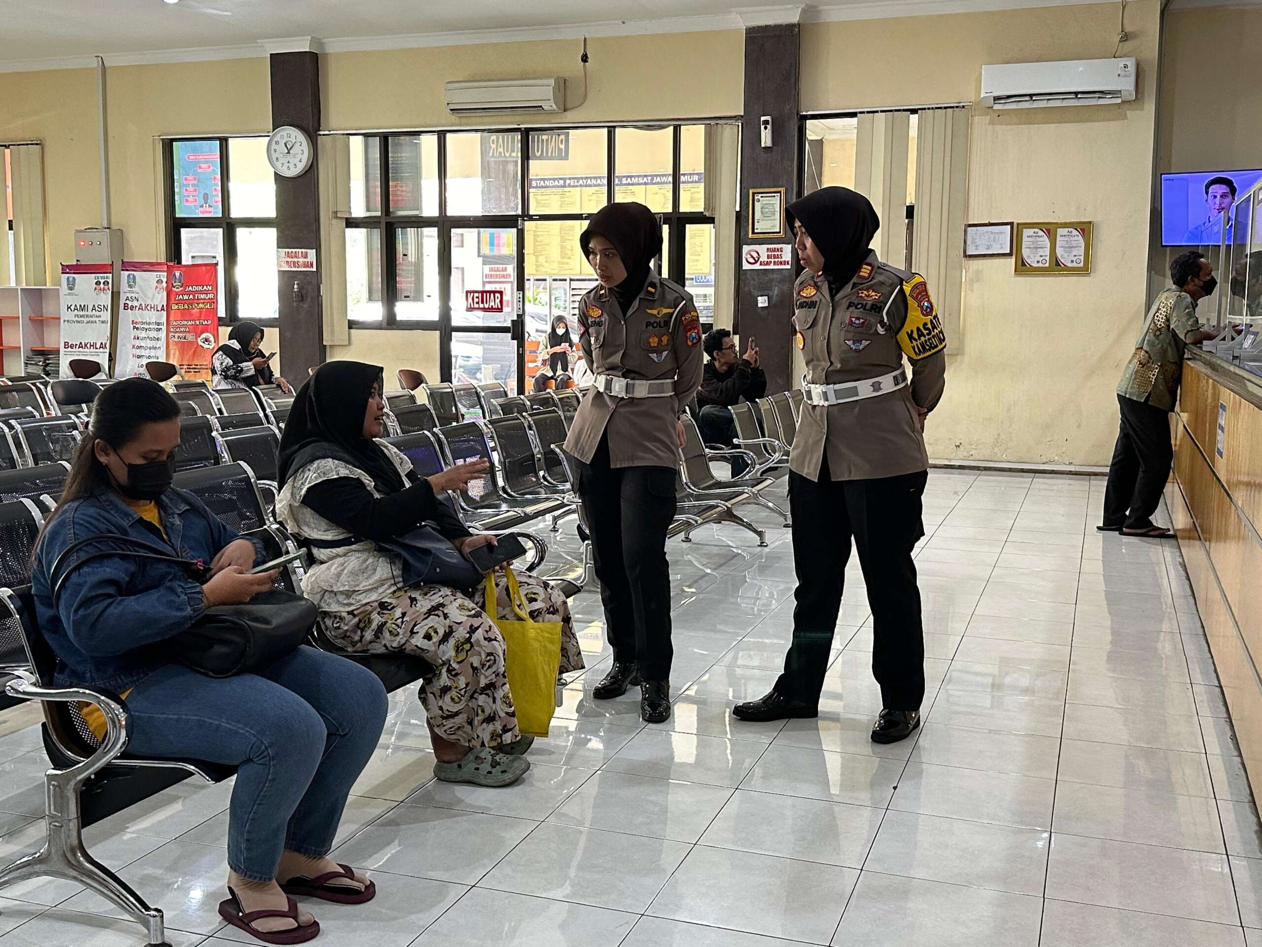 “Hari ini kami melakukan sidak pelaksanaan tugas anggota Samsat di semua Pokja yang ada di Polres Kediri Kota,” ujar Kasat Lantas Polres Kediri Kota, AKP Andhini Puspa Nugraha.