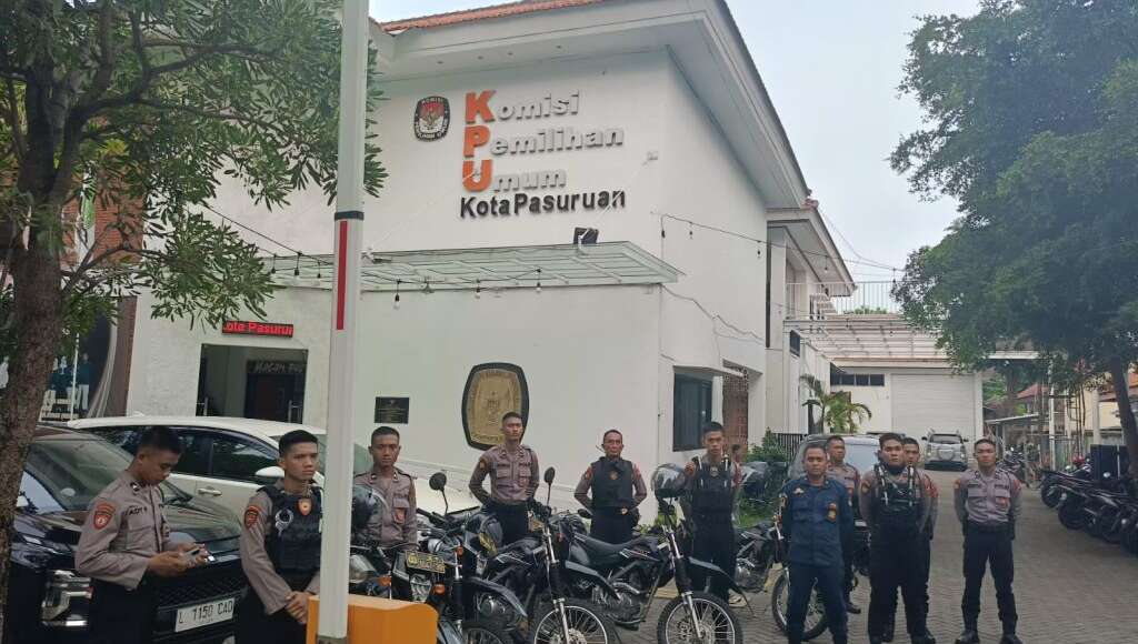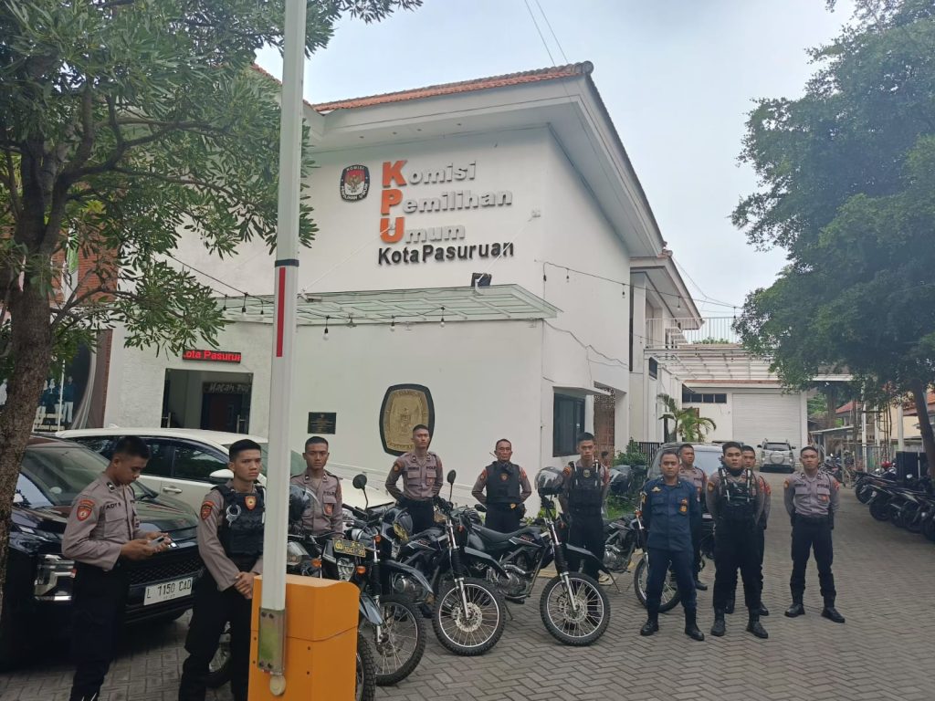 Pada periode pasca-pemungutan suara, anggota Patroli Raimas Polres Pasuruan Kota berada dalam keadaan siaga dan berpatroli di sekitar Kantor KPU. Mereka memastikan bahwa tidak ada gangguan atau insiden yang mengancam keamanan di area tersebut.