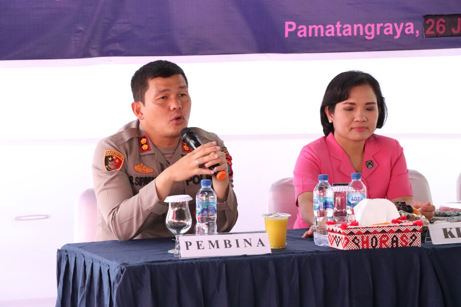 Kapolres Simalungun dalam arahannya menyampaikan bahwa Ibu-ibu Bhayangkari harus dapat mendukung kinerja para suaminya dalam memberikan pelayanan yang terbaik, “Sebagi Istri dari seorang Polisi Ibu-ibu sekalian harus bisa mendukung kinerja para Suami agar dapat melaksanakan tugas dengan baik dalam memberikan pelayanan kepada masyarakat,” Ucap AKBP Ronald.