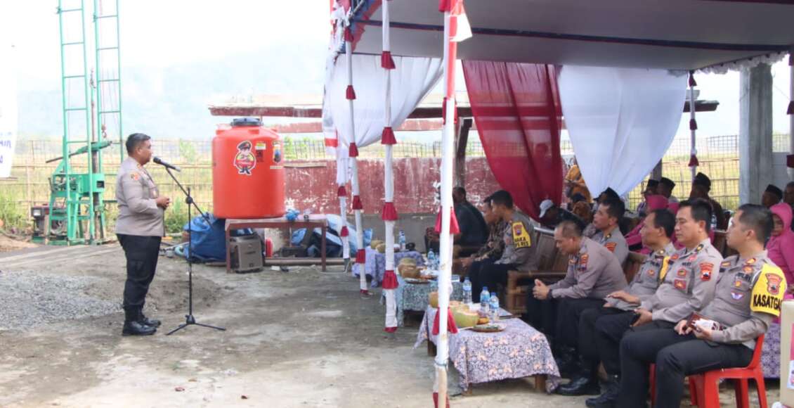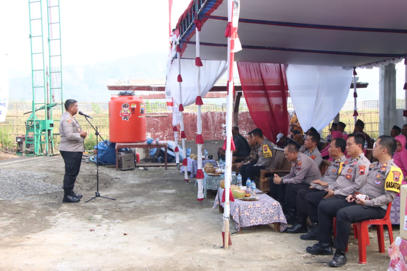 “Ini merupakan amanah dari Bapak Kapolri agar seluruh jajaran di Kepolisian untuk melakukan kegiatan Polri peduli lingkungan, salah satu bentuknya pembuatan sumur bor dan pemberian pompa air,” ucap dia saat memberikan sambutan.