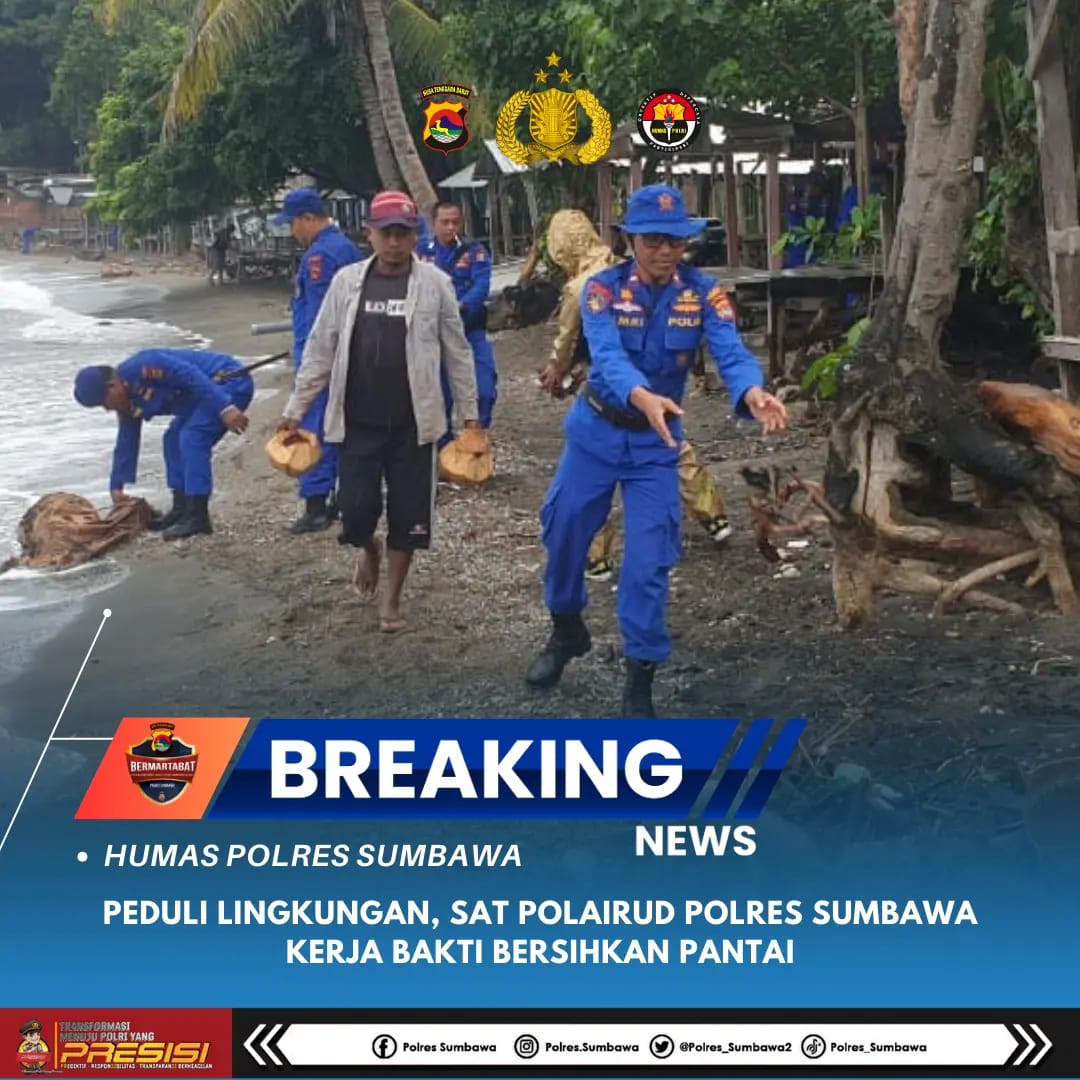 “Kami dari sat polairud Polres Sumbawa Polda NTB menggelar bakti sosial bersih bersih sampah yang ada dipantai Empan Desa Labuan Badas dan pantai Batu Gong” ucapnya.