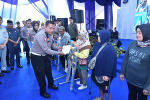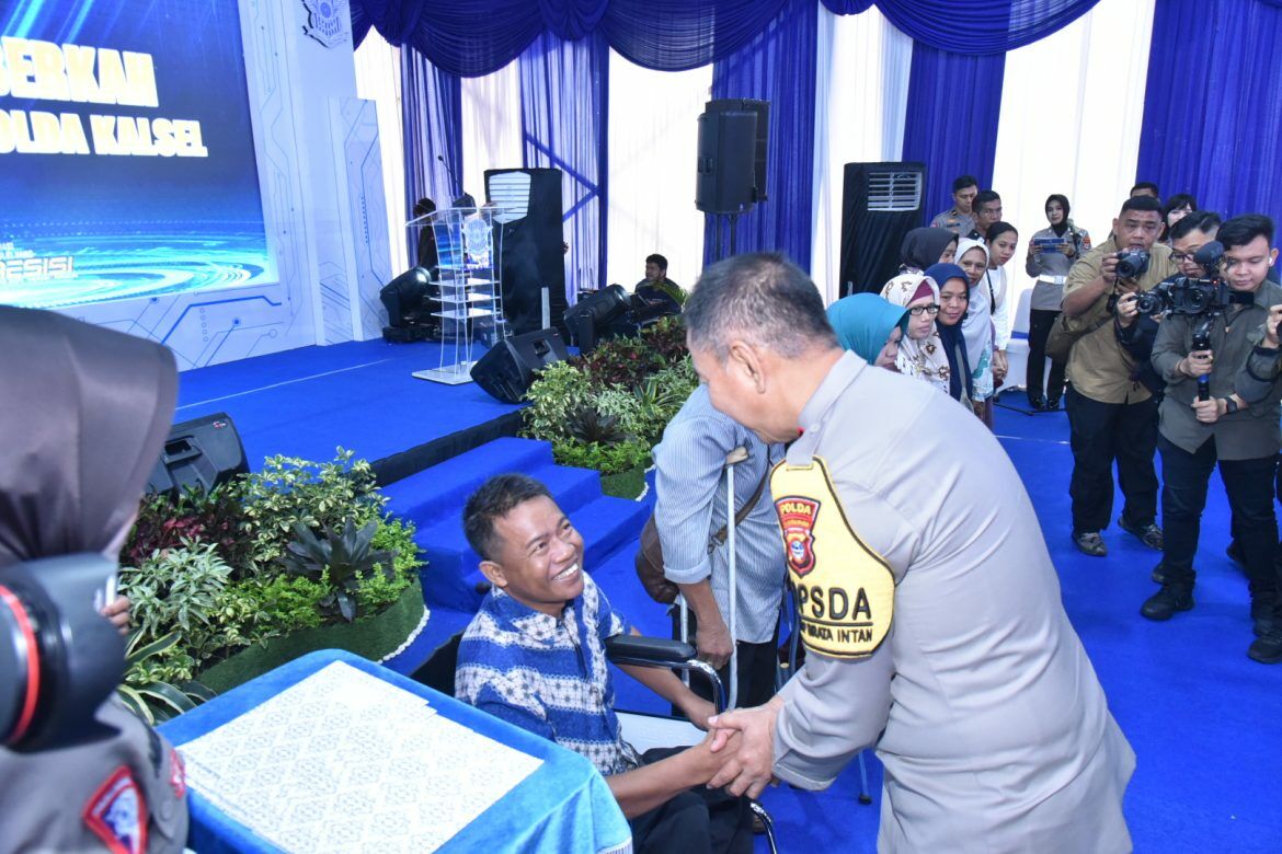 Bantuan yang diserahkan langsung oleh Kapolda Kalsel Irjen Pol Winarto, S.H., M.H. berupa kursi roda dan tongkat kruk untuk penyandang disabilitas, sembako bagi warga sekitar Gedung RTMC dan Gudang SBST, serta Tali asih bagi anak-anak Panti Asuhan.
