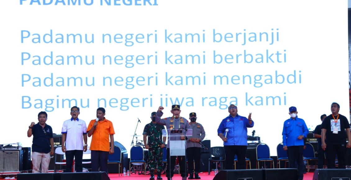 Sebelum mengakhiri sambutannya, Sigit pun memimpin para buruh untuk menyanyikan salah satu lagu wajib nasional berjudul Bagimu Negeri. Kapolri dan buruh pun larut bernyanyi bersama di acara tersebut.(Red/Hum)