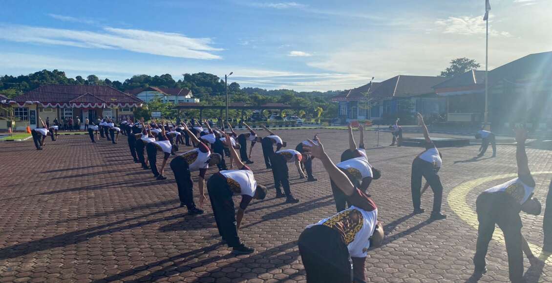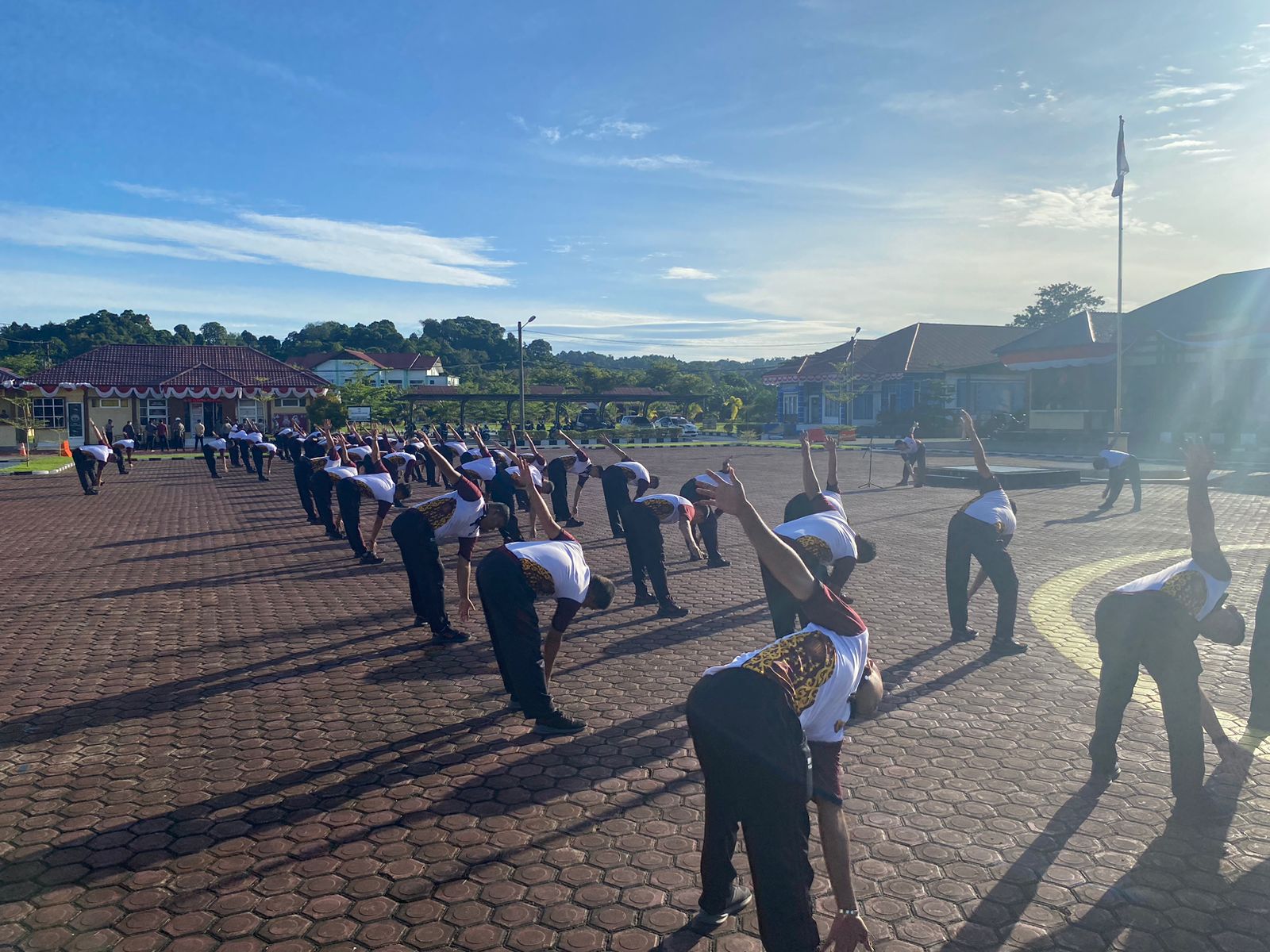 Pelaksanaan Apel Pagi Dilanjutkan Dengan Kegiatan Olahraga di Polres Aceh Jaya