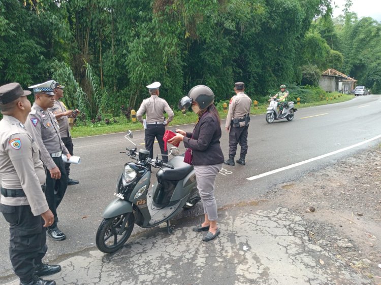 Selain memberikan sosialisasi, petugas juga memberikan himbauan tertib berlalu lintas dan melakukan pengaturan arus lalu lintas di titik-titik keramaian masyarakat.