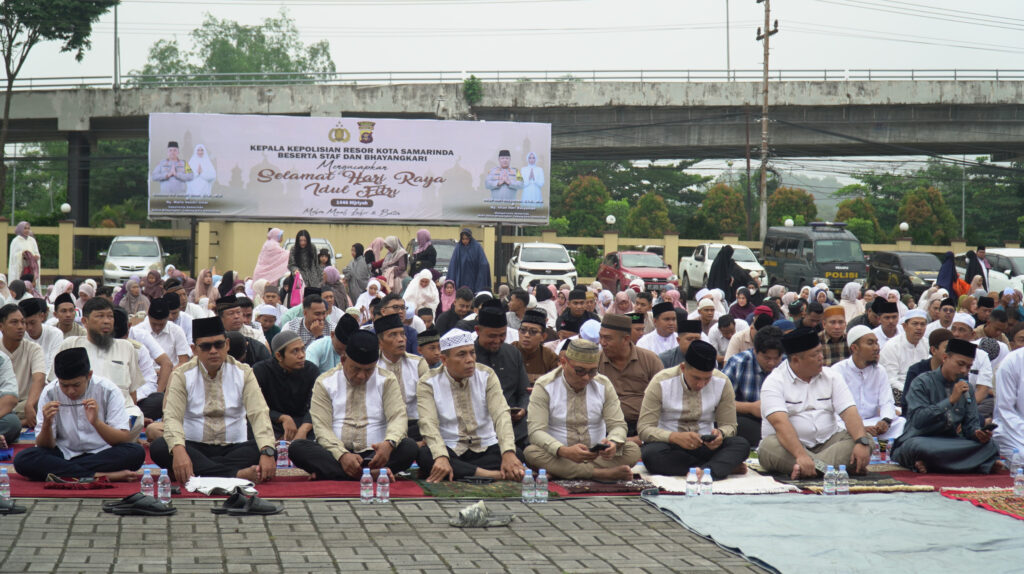 Sholat Idul Fitri dimulai pukul 07.15 WITA, dipimpin oleh Ustadz Danang selaku Imam dan Khatib. Seusai sholat, Kapolresta Samarinda, Kombes Pol Hendri Umar, S.I.K., M.H., menyampaikan sambutan yang menekankan pentingnya menjaga nilai-nilai ibadah yang telah dilaksanakan selama bulan Ramadhan. Beliau juga mengajak seluruh personil untuk terus meningkatkan kualitas keimanan dan menjadikan Idul Fitri sebagai momentum mempererat silaturahmi serta memperkuat sinergi dalam menjaga keamanan dan ketertiban masyarakat.