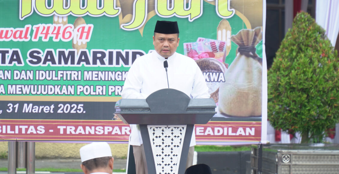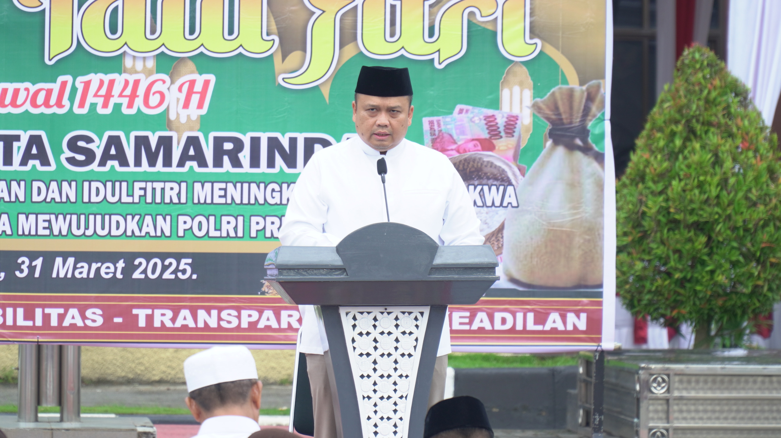 Pelaksanaan Sholat Idul Fitri 1 Syawal 1446 H di Polresta Samarinda Berjalan Khidmat dan Lancar