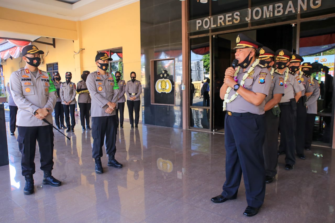 Sebelum pelepasan purna bakti dimulai, Polres Jombang menggelar Apel Pagi di lapangan Mapolres, yang dipimpin oleh Kapolres Jombang.