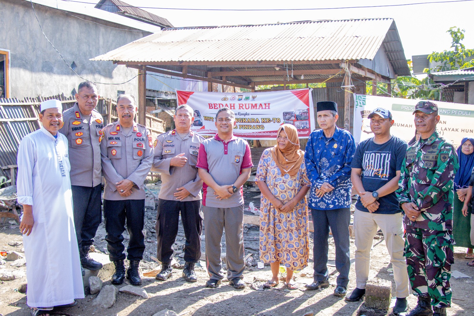 Kapolres Pinrang menjelaskan Bahwa Kegiatan peletakan batu pertama( Bedah Rumah) dilaksanakan bersama dengan Baznas Kabupaten Pinrang dalam rangka Memperingati Hari Bhayangkara ke 78 Tahun 2024.